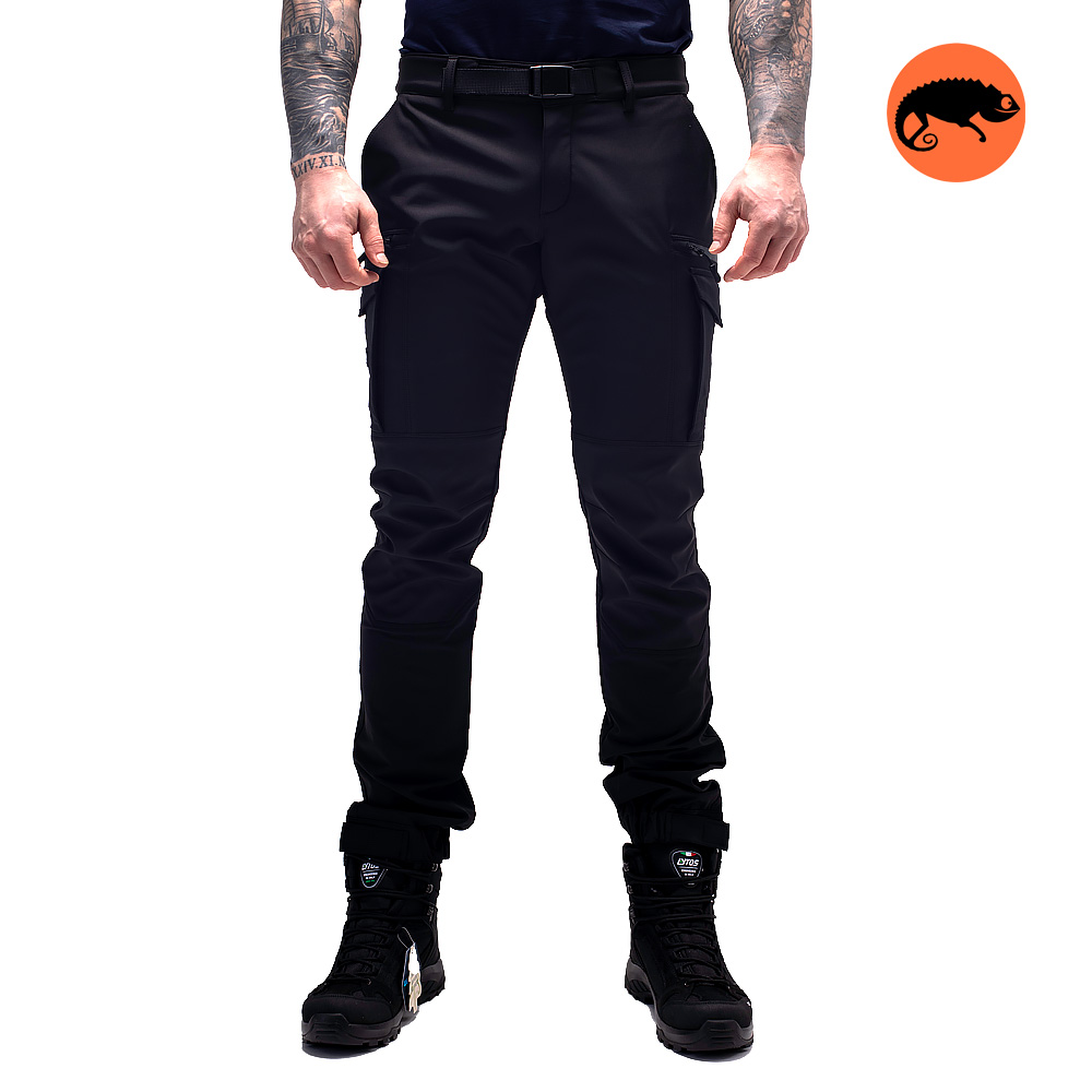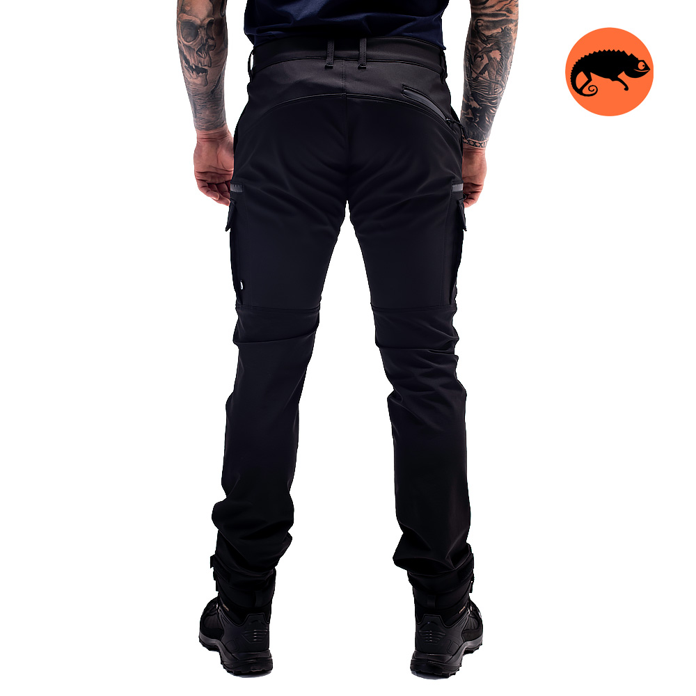 Матеріал Softshell складається з 3 шарів: Всередині: приємний на дотик м'який мікрофліс, який добре зберігає тепло; Посередині: мембрана, яка захищає від опадів і підтримує комфортну температуру тіла; Зовні: поліестер, який відповідає за зручну посадку штанів і захищає від вітру та опадів. Регульований вшитий ремінь дає змогу підігнати штани під фігуру, є також шльовки для додаткового ременя за потреби.