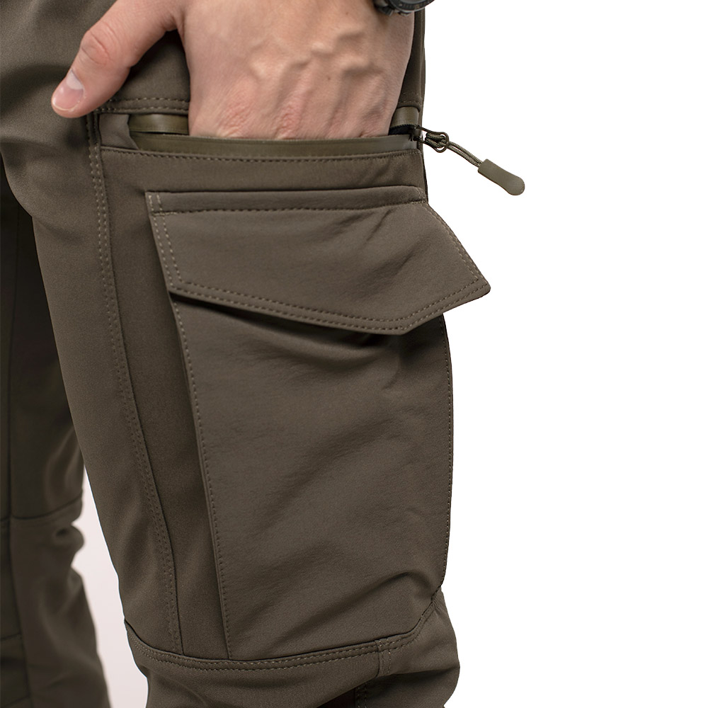 Штани Hybrid Tundra - ідеальне поєднання комфорту та функціональності для активних днів, чи то міські прогулянки, подорожі, чи то активний відпочинок. Штани виготовлені з комбінованої тканини Soft Shell (92% поліестер, 8% спандекс, щільність тканини 276 г/м2) і вставок (92% нейлону і 8% спандексу, щільність тканини 220 г/м2) і призначені для холодної пори року. Виготовлені з тканини Soft Shell штани забезпечують чудовий захист від вітру і вологи, не обмежуючи свободи рухів, зберігаючи тепло і комфорт. Легкість та еластичність матеріалу дають змогу комфортно почуватися в будь-яких умовах, а вставки з нейлону та спандексу посилюють зносостійкість і додають додаткову гнучкість, роблячи штани довговічними та практичними. Завдяки спандексу, штани відмінно тягнуться, забезпечуючи максимальний комфорт під час активних рухів.