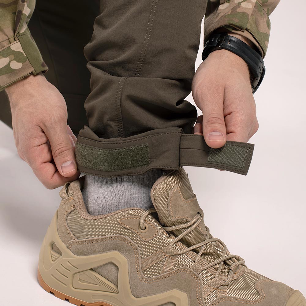 Завдяки липучці на низу штанів, ви легко можете підігнати їх під свої уподобання або умови. Це дозволяє вам адаптувати штани під різне взуття - від кросівок до туристичних черевиків. Регулювання низу допомагає уникнути потрапляння бруду, води або снігу всередину, особливо в умовах дощової або снігової погоди, що особливо важливо під час активних прогулянок або подорожей.