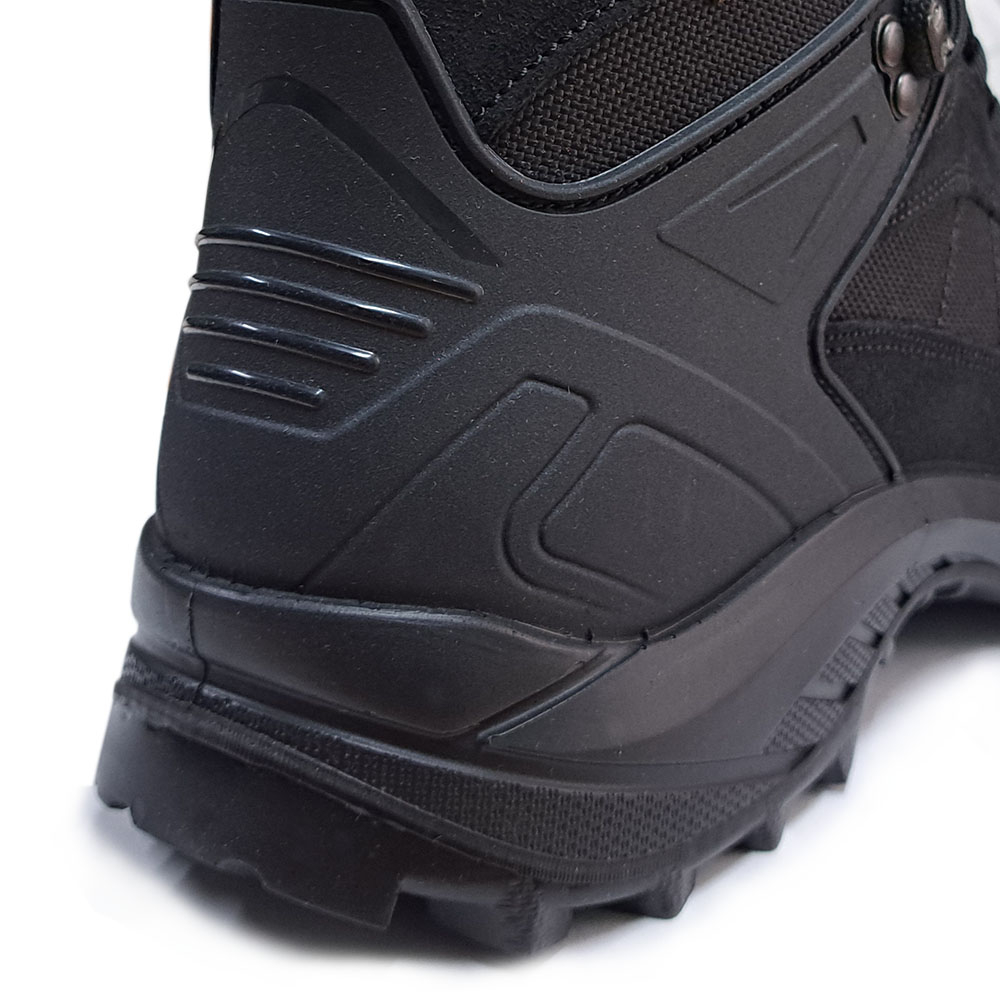 Верх із натуральної шкіри в комбінації з нейлоном 1000D, менш вразливий до пошкоджень та добре тримає форму. Підносок та п'ята з додатковим захистом.