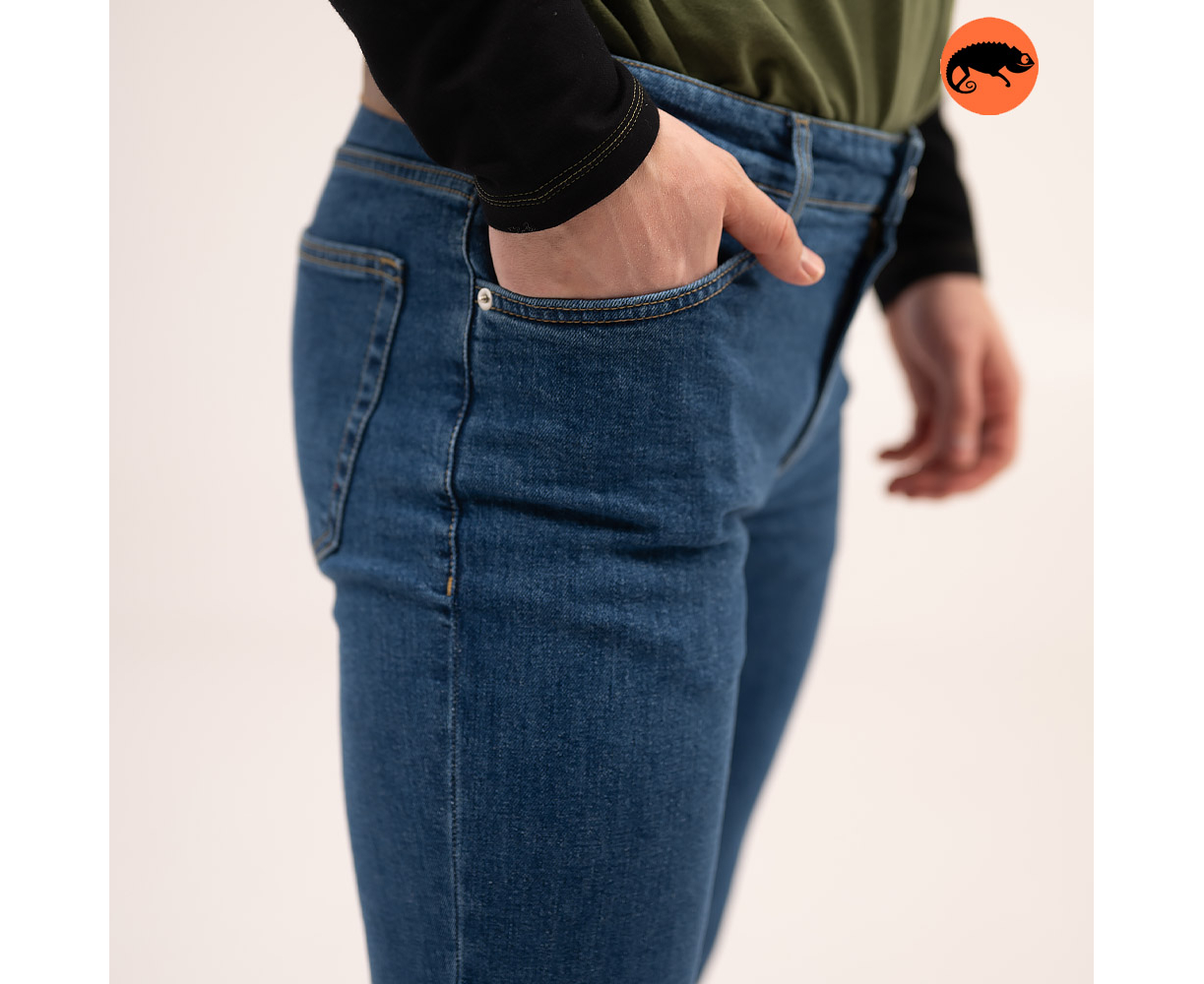 Джинси виготовлені з міцного деніму щільністю 440 г/м², що забезпечує високу зносостійкість та збереження форми навіть при активному носінні.
