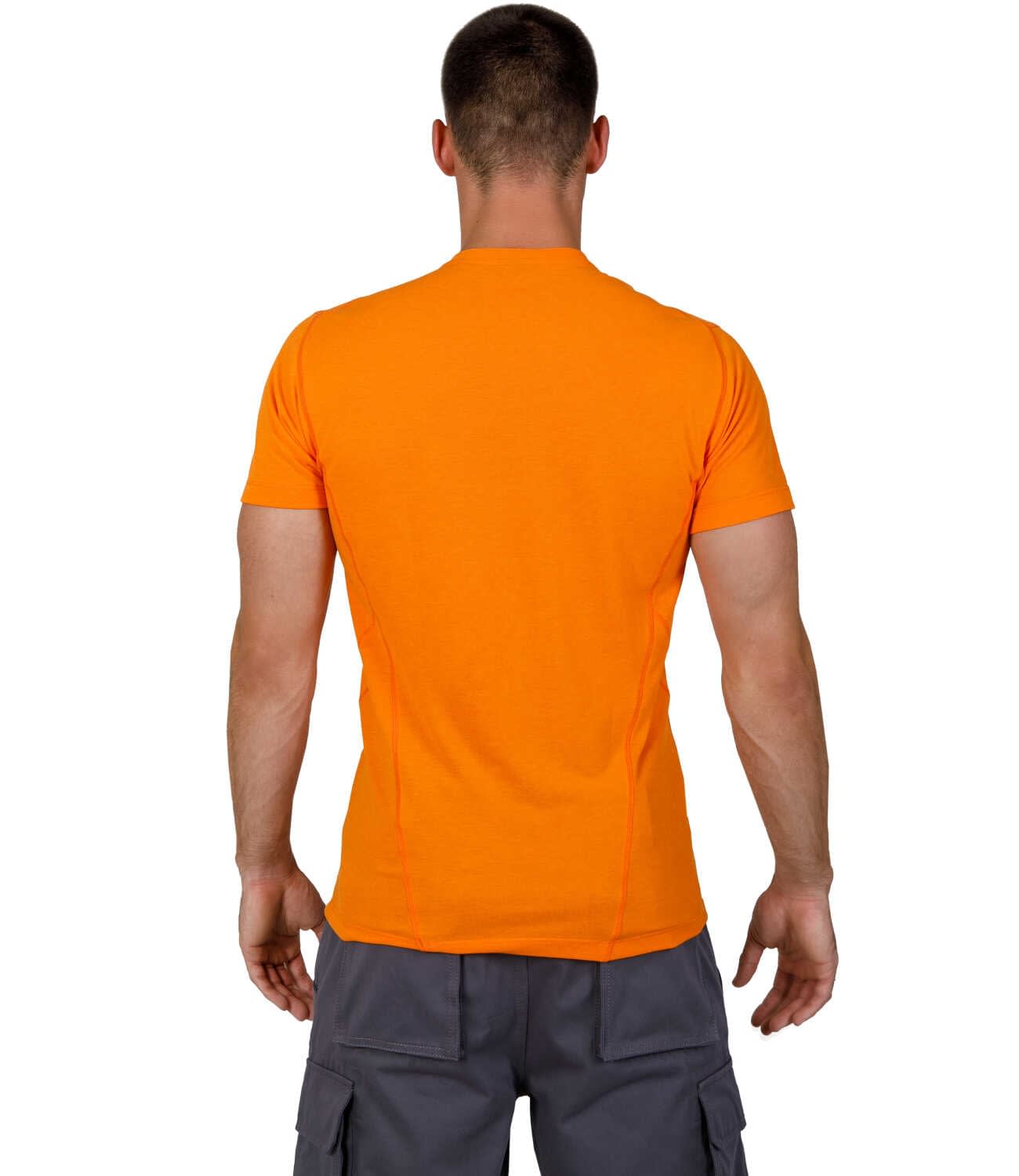 Помаранчева чоловіча футболка Crossfit Orange призначена для занять спортом, активного відпочинку у спеку. Матеріал у своєму складі містить волокна, які одночасно вбирають та відштовхують вологу. При цьому матеріал усією поверхнею вбирає вологу і висихає у 4 рази швидше, ніж звичайний трикотаж. У цій футболці ви почуватиметеся комфортно навіть якщо за вікном 30 градусів тепла. Футболка спортивного крою не сковує руху, добре сидить на фігурі. Матеріал пройшов сертифікацію за європейськими стандартами якості BLUESIGN ® та Oeko-Tex Standard 100.