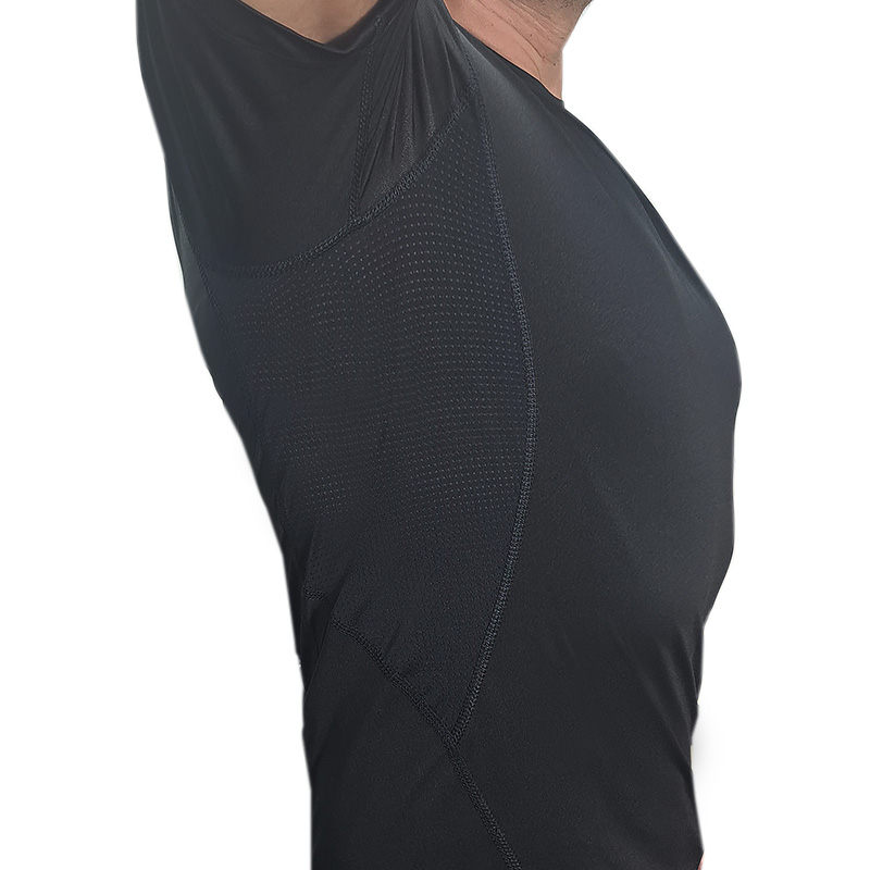 Вставки з сітчастого матеріалу з боків під пахвами для кращого відведення вологи та вентиляції.