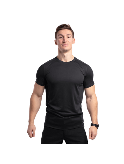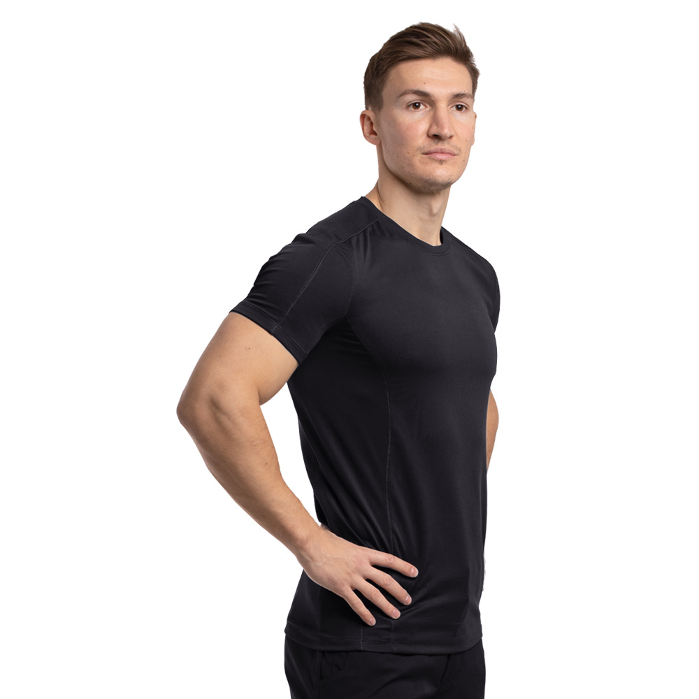 Чоловіча футболка Hybrid Black - це ідеальний вибір для спорту та будь-якого іншого виду активного відпочинку у спеку. Виріб пошитий з м'яких текстурних комбінованих трикотажних матеріалів: 100% поліестер щільністю 150 г/м2 та іншого матеріалу 88% поліестеру, 12% спандексу щільністю 140 г/м2.