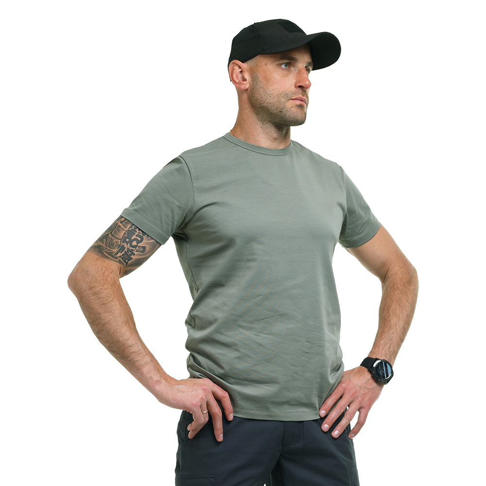 Бавовна тримає комфортну температуру, вбираючи вологу і випускаючи надлишок пару. Нитки еластану і якісне пошиття не дають футболці втратити форму при регулярному носінні і пранні. Одягайте її кожен день, під час виїздів на природу і будьте впевнені, що річ на багато сезонів збереже оригінальний вигляд.