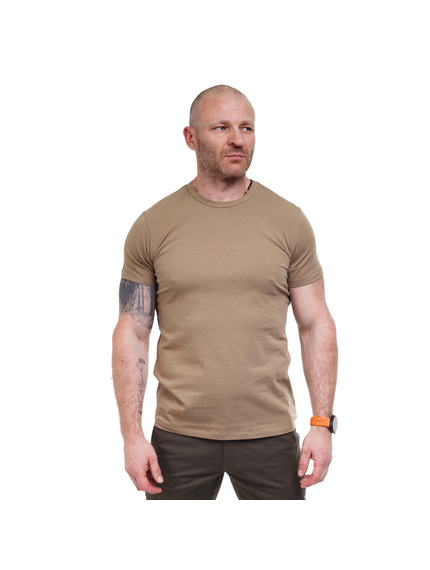 Чоловіча футболка Jersey Tan виконана з комбінації 95% натуральної бавовни та 5% еластану, щільністю 200-210 г/м2. Футболка в міру вільного крою комфортно облягає тіло і при активності не здавлює, забезпечуючи свободу рухів. Тканина має гарні дихаючі властивості, вбирає і відводить вологу, підтримуючи комфортну температуру. Якісне пошиття та нитки еластану не дають футболці втратити форму при регулярному носінні та пранні. Футболка підійде для щоденного використання, для активного відпочинку, занять спортом.