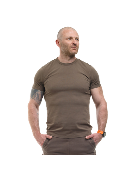 Футболка чоловіча Jersey Tundra виконана з матеріалу (комбінації 95% натуральної бавовни і 5% еластану щільністю 200-210 г/м2), дає зручну посадку за будь-якої фігури. Річ комфортно облягає тіло, але не здавлює. При нахилах, махах руками та іншій активності вам не буде здаватися, що футболка ось-ось розійдеться по швам.