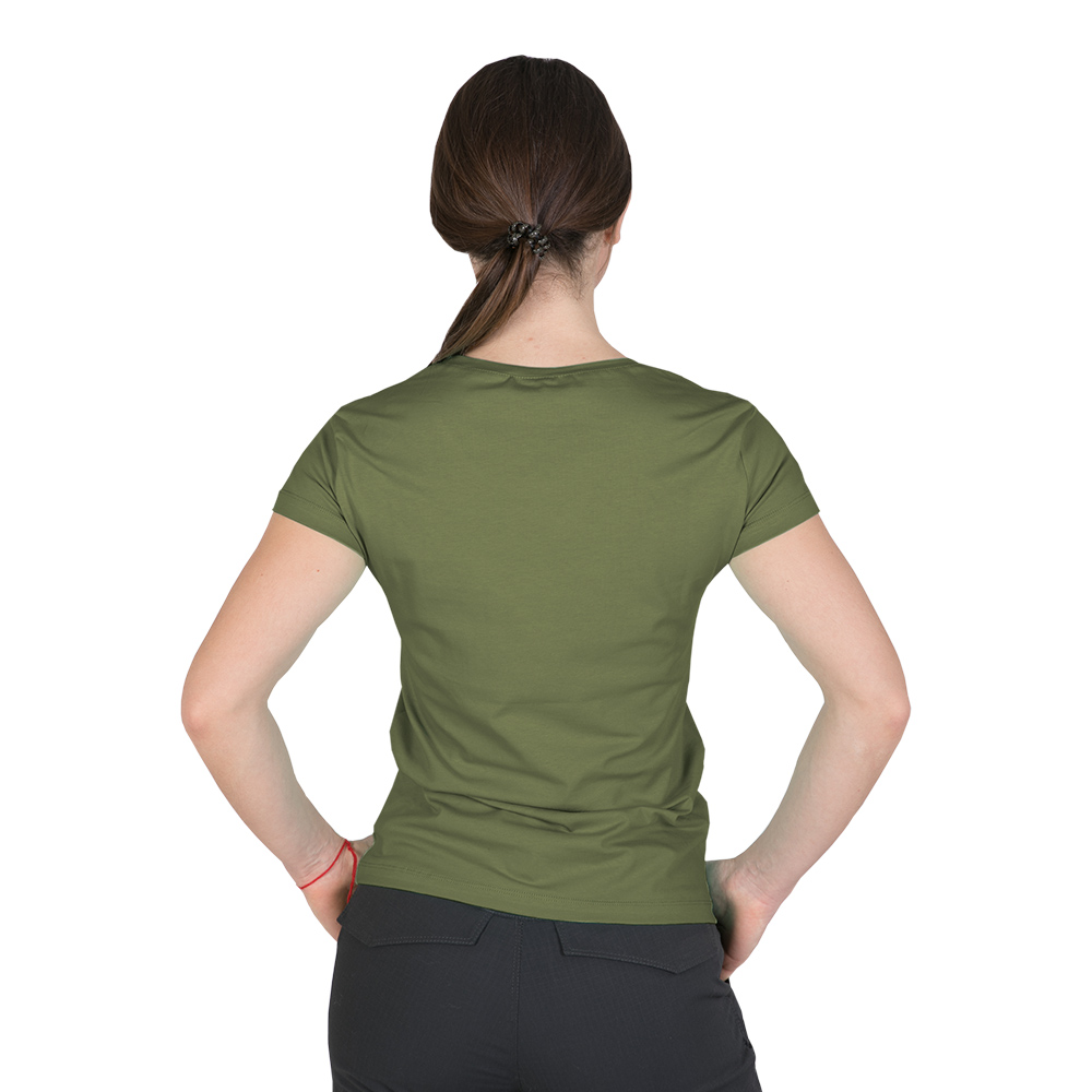 Жіноча футболка Light Jersey Khaki виготовлена з якісної повітропроникної тканини (бавовна 95%, еластан 5%, щільністю 170 г/м2). Такий склад не тільки забезпечує оптимальну терморегуляцію, але також гарантує довговічність виробу. Матеріал добре пропускає повітря, забезпечує комфорт і впевненість у собі, що дуже важливо влітку. Тканина приємна до тіла, комфортна в носінні та вигідно підкреслює фігуру.