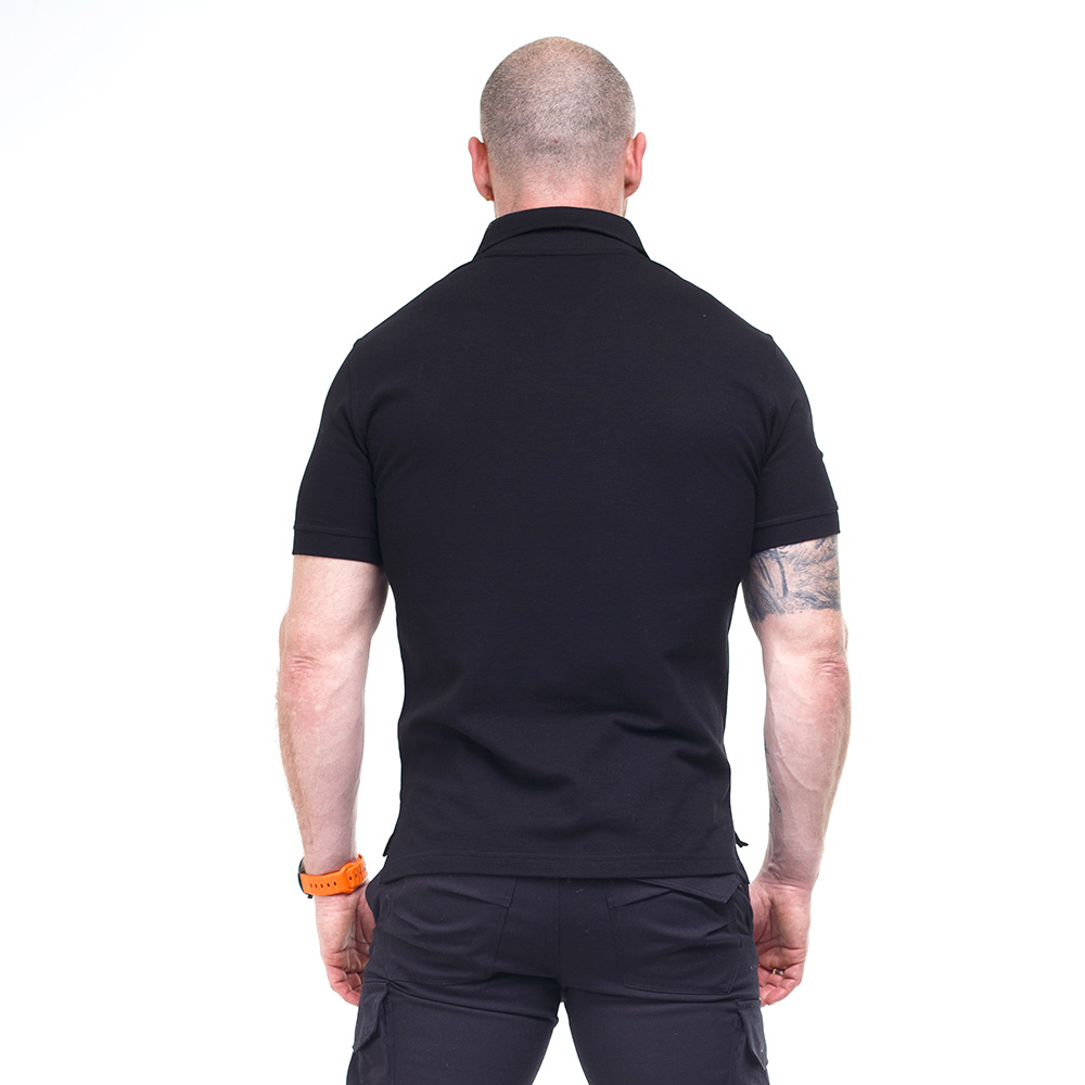 Чорна чоловіча футболка Polo Serious Black - базова футболка поло з бавовни – спрощена версія моделі COP, яку розробляли під співробітників правоохоронних органів та охоронні агентства. Відмінність у функціональності, але матеріал і крій ідентичний.