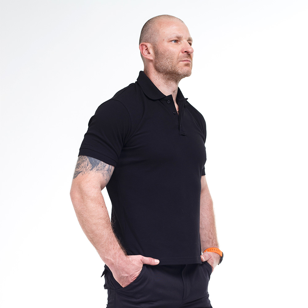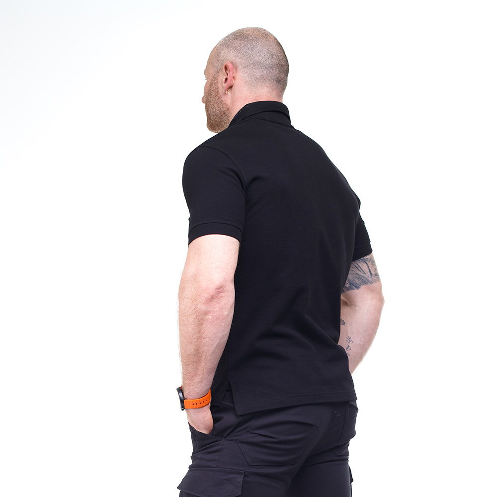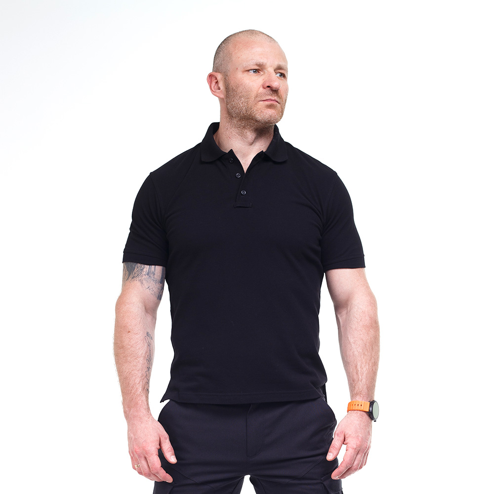 Чорна чоловіча футболка Polo Serious Black - базова футболка поло з бавовни – спрощена версія моделі COP, яку розробляли під співробітників правоохоронних органів та охоронні агентства. Відмінність у функціональності, але матеріал і крій ідентичний.