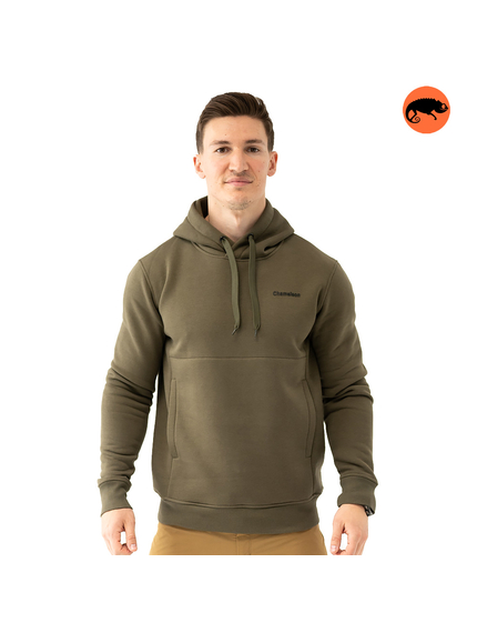 Кофта худі чоловіча чорна Anorak warm Gen2 з логотипом бренду Chameleon виготовлена з м'якого, приємного на дотик якісного трикотажу з начосом (бавовна 80%, поліестер 20%, щільністю 320 г/м2.) Чорне худі з капюшоном, який регулюється завдяки широкому шнурку, спереду розташована функціональна велика наскрізна зручна кишеня.