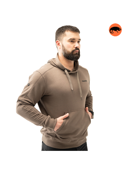 Матеріал: трикотаж тринитка без начосу (70% бавовна, 30% поліестер), щільність 320 г/м² – міцна, зносостійка та приємна до тіла тканина. Функціональний дизайн: містка кишеня-кенгуру для зручного зберігання дрібниць. Комфорт і тепло: щільний матеріал зберігає тепло, забезпечуючи хорошу вентиляцію. Універсальність: підходить як для активного відпочинку, так і для повсякденного носіння.