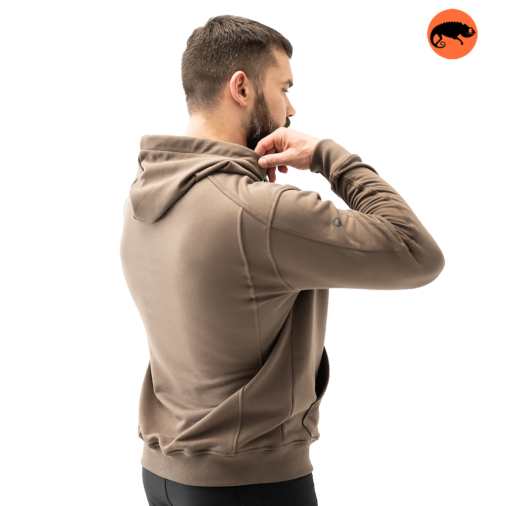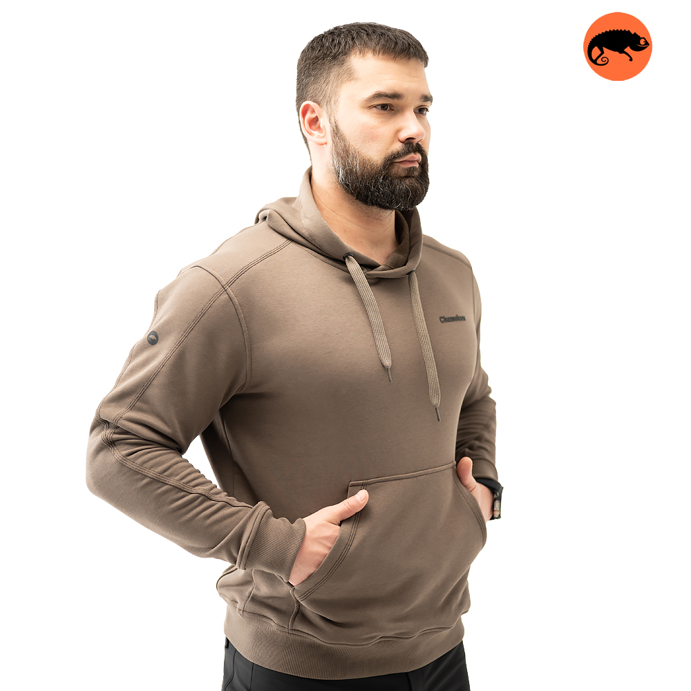 Матеріал: трикотаж тринитка без начосу (70% бавовна, 30% поліестер), щільність 320 г/м² – міцна, зносостійка та приємна до тіла тканина. Функціональний дизайн: містка кишеня-кенгуру для зручного зберігання дрібниць. Комфорт і тепло: щільний матеріал зберігає тепло, забезпечуючи хорошу вентиляцію. Універсальність: підходить як для активного відпочинку, так і для повсякденного носіння.