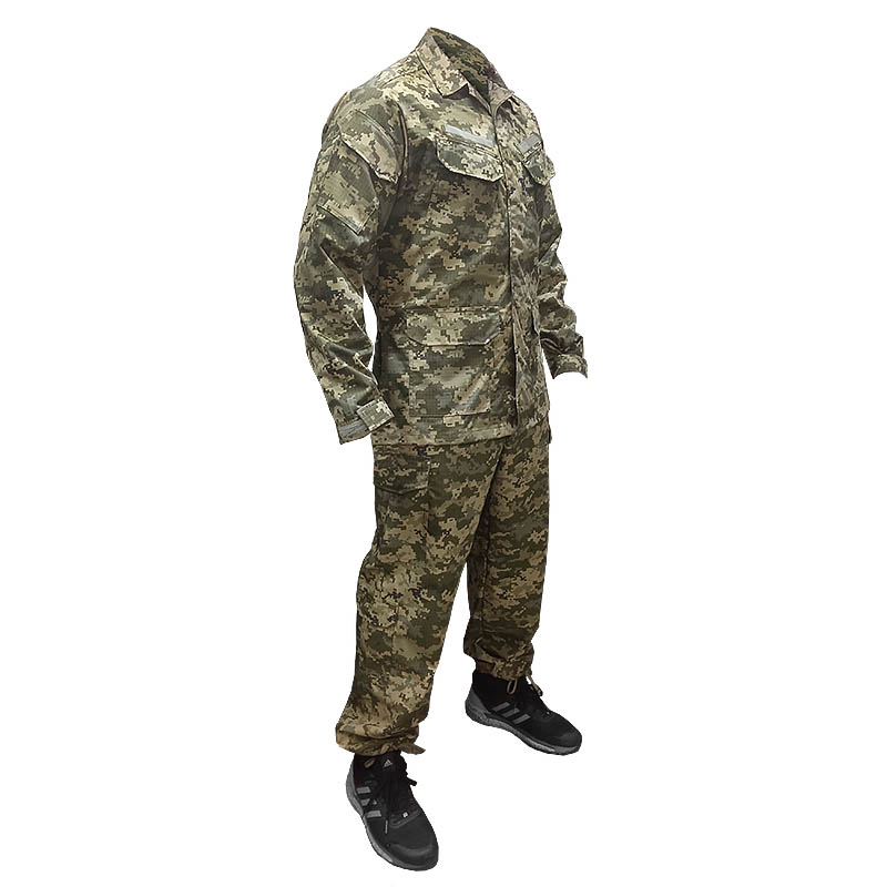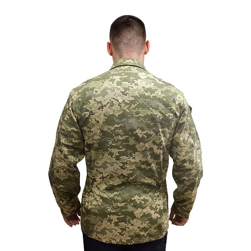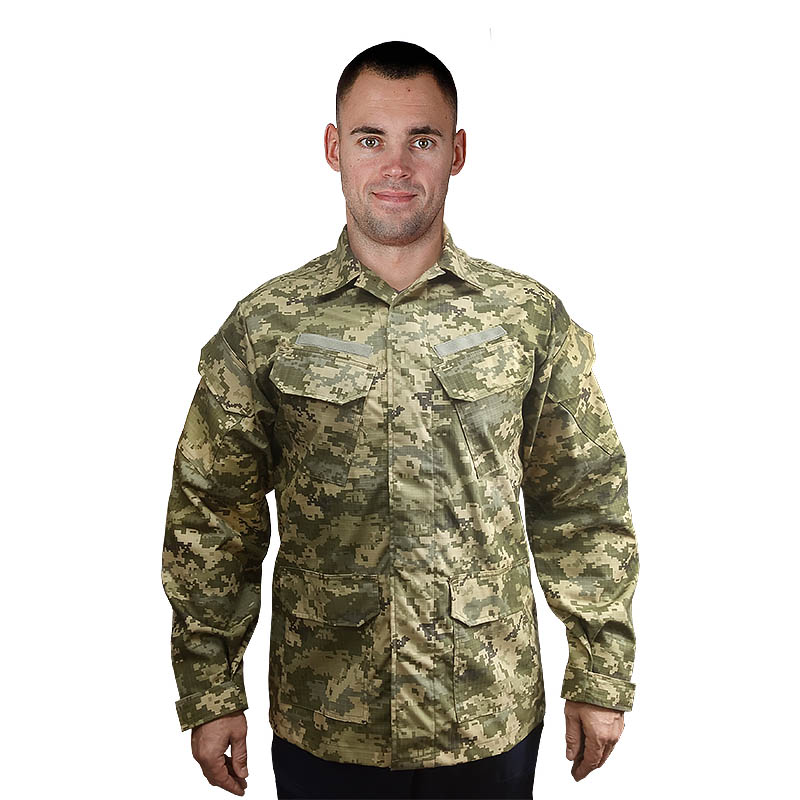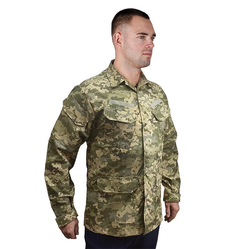 Костюм польовий ММ14 Ukraine Digital Pixel зручний костюм, який підійде для військових, працівників охоронних структур, фізичної роботи на відкритому повітрі, а також для активного відпочинку на природі, полюванні, риболовлі. Костюм польовий зшитий з міцної вологовідштовхувальної, зносостійкої тканини ріп-стоп (60% бавовни, 40% поліестеру, щільність 230 г/м2) тому надійно захистить людину від механічних пошкоджень і від попадання вологи та бруду. Володіючи повітропроникністю, яка порівняна з тканинами з 100% бавовни, тканина рип-стоп, на відміну від бавовняних аналогів, не схильна до гниття. У структуру тканини вбудовані армовані нитки, що утворюють так званий «каркас», який значно підвищує характеристики міцності, без збільшення ваги матеріалу. У разі механічного пошкодження тканини (утворення порізу, розриву) армований «каркас» запобігає збільшенню області пошкодження.