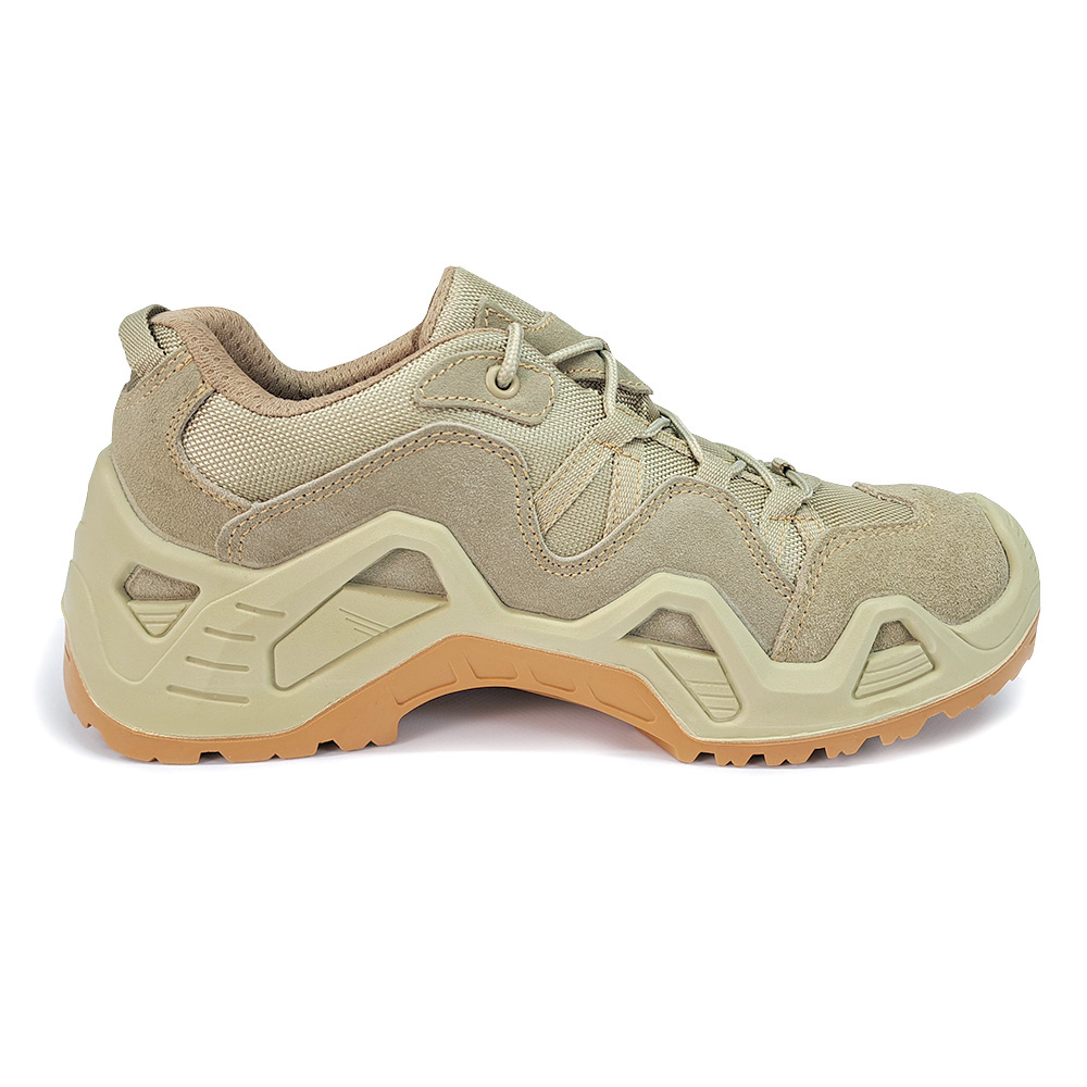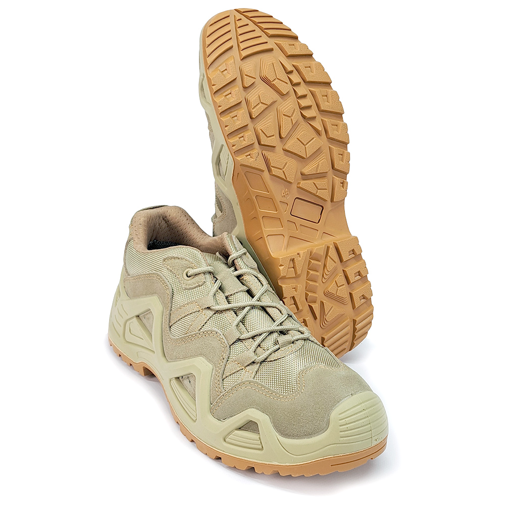 Кросівки тактичні low-cut Gladiator Beige - якісне зручне, міцне демісезонне взуття, яке відмінно підійде для щоденного використання в міських, похідних, польових умовах. Кросівки виготовлені з комбінованого матеріалу: текстильні вставки зносостійкого нейлону в поєднанні з міцною натуральною замшею. Усередині взуття має текстильну дихаючу підкладку. Кросівки забезпечені водонепроникною мембраною з мікроскопічними порами, яка добре пропускає повітря, дає змогу невеликим молекулам водяної пари вийти назовні, має прекрасну теплоізоляцію, що забезпечує ногам повний захист.