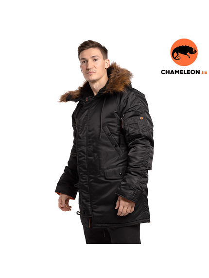 Чорна зимова куртка Аляска N-3B Black чоловіча подовжена