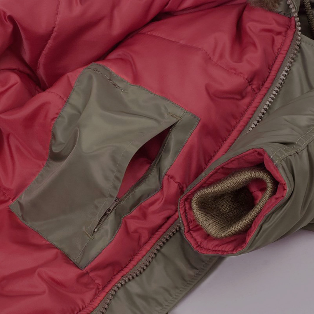 Всередині куртки яскрава підкладка з 100 % бордового поліестеру, щільність 70 г/м2. Така підкладка була не тільки елементом дизайну, а й функціональною частиною куртки та була створена для підвищення видимості і швидкого знаходження пілотів у надзвичайних ситуаціях.