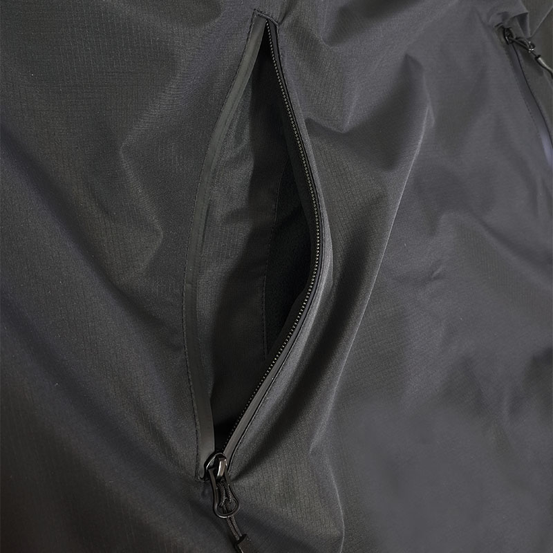 Анорак має дві зручні функціональні місткі бічні кишені і велику нагрудну кишеню. Всі кишені на водонепроникних блискавках і не дозволять волозі потрапити усередину у дощову погоду. Спереду комір також застібається на водонепроникну блискавку. Застібка на чверть виробу на блискавці для зручної зйомки та одягання куртки. Також водонепроникні блискавки з боків від низу та під пахвами забезпечують додаткову вентиляцію. Вони ж допомагають без особливих зусиль дістатись спорядження під курткою.
