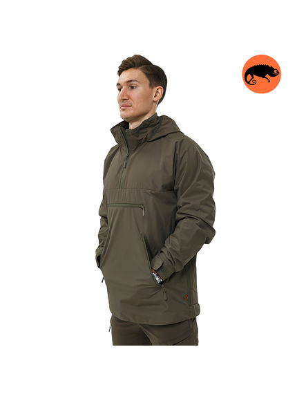 Анорак має дві зручні функціональні місткі бічні кишені і велику нагрудну кишеню. Всі кишені на водонепроникних блискавках і не дозволять волозі потрапити усередину у дощову погоду. Спереду комір також застібається на водонепроникну блискавку. Застібка на чверть виробу на блискавці для зручної зйомки та одягання куртки. Також водонепроникні блискавки з боків від низу та під пахвами забезпечують додаткову вентиляцію. Вони ж допомагають без особливих зусиль дістатись спорядження під курткою.