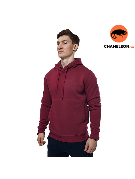 Бордове худі чоловіче Anorak warm Gen2 Burgundy з логотипом бренду Chameleon виготовлена з м'якого, приємного на дотик якісного трикотажу з начосом (бавовна 80%, поліестер 20%, щільністю 320 г/м2.) Бордовий худі чоловічий з капюшоном, який регулюється завдяки широкому шнурку, спереду розташована функціональна велика наскрізна зручна кишеня.