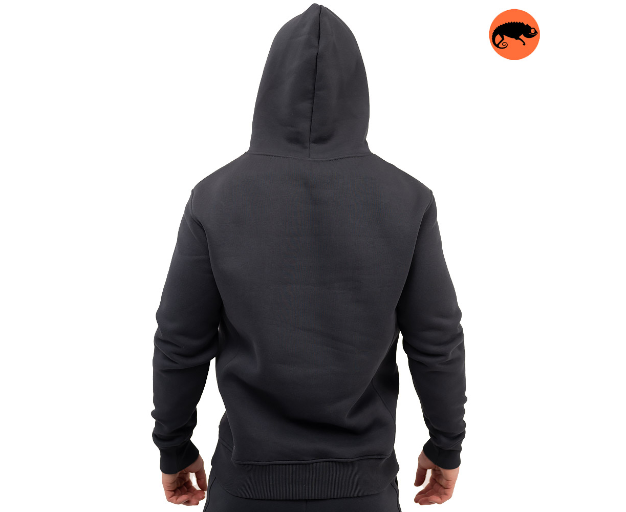 Кофта худі чоловіча чорна Anorak warm Gen2 з логотипом бренду Chameleon виготовлена з м'якого, приємного на дотик якісного трикотажу з начосом (бавовна 80%, поліестер 20%, щільністю 320 г/м2.) Чорне худі з капюшоном, який регулюється завдяки широкому шнурку, спереду розташована функціональна велика наскрізна зручна кишеня.