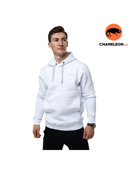 Кофта худі білий чоловічий з капюшоном Anorak warm Gen2 White з логотипом бренду Chameleon виготовлена з м'якого, приємного на дотик якісного трикотажу з начосом (бавовна 80%, поліестер 20%, щільністю 320 г/м2). Худі білий чоловічий з капюшоном, який регулюється завдяки широкому шнурку. Спереду білого худі розташована функціональна велика наскрізна зручна кишеня.