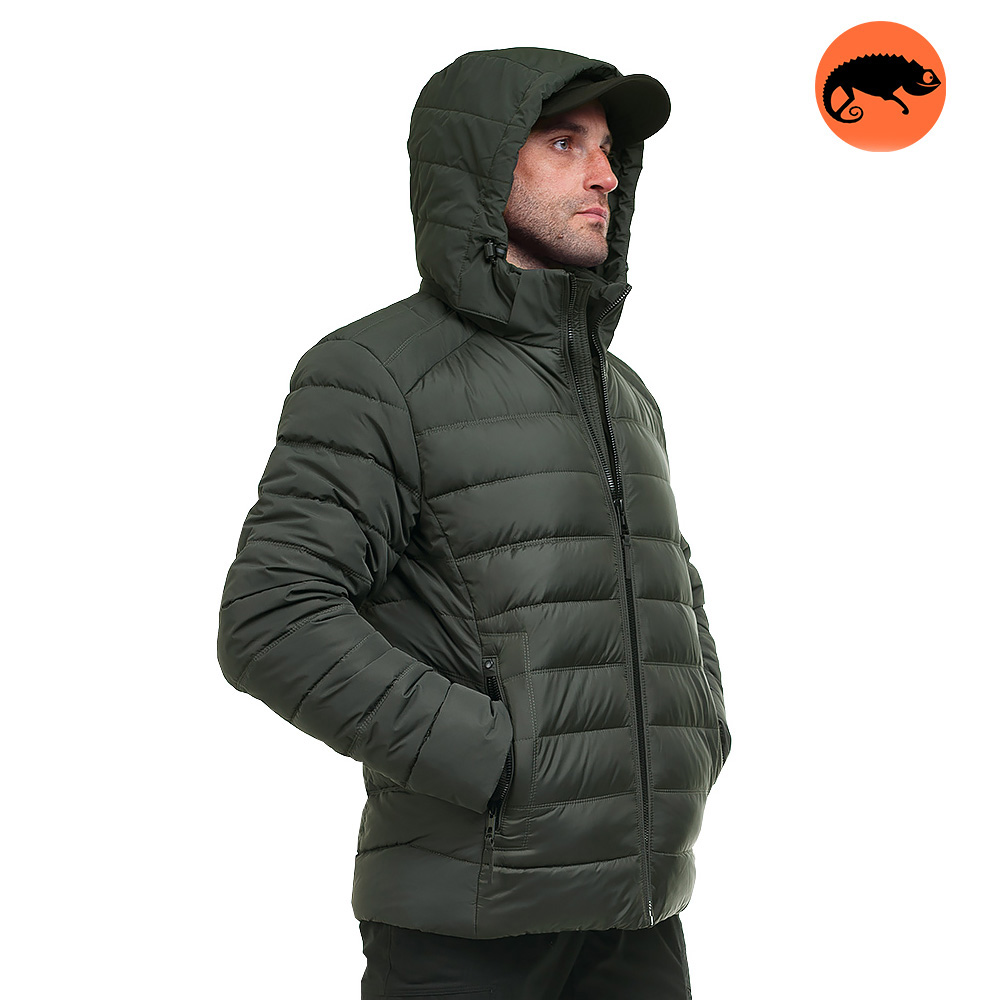 Стьобана чоловіча куртка з капюшоном Cyclon Olive з центральною застібкою на блискавці, знімним капюшоном і утеплювачем з біопуху. Виріб призначений для зимового та демісезонного періоду. Верх куртки виготовлений з міцного 100% дихаючого поліестеру, здатного витримати вітряну, дощову і снігову погоду. Підкладка виконана зі 100% поліестеру.
