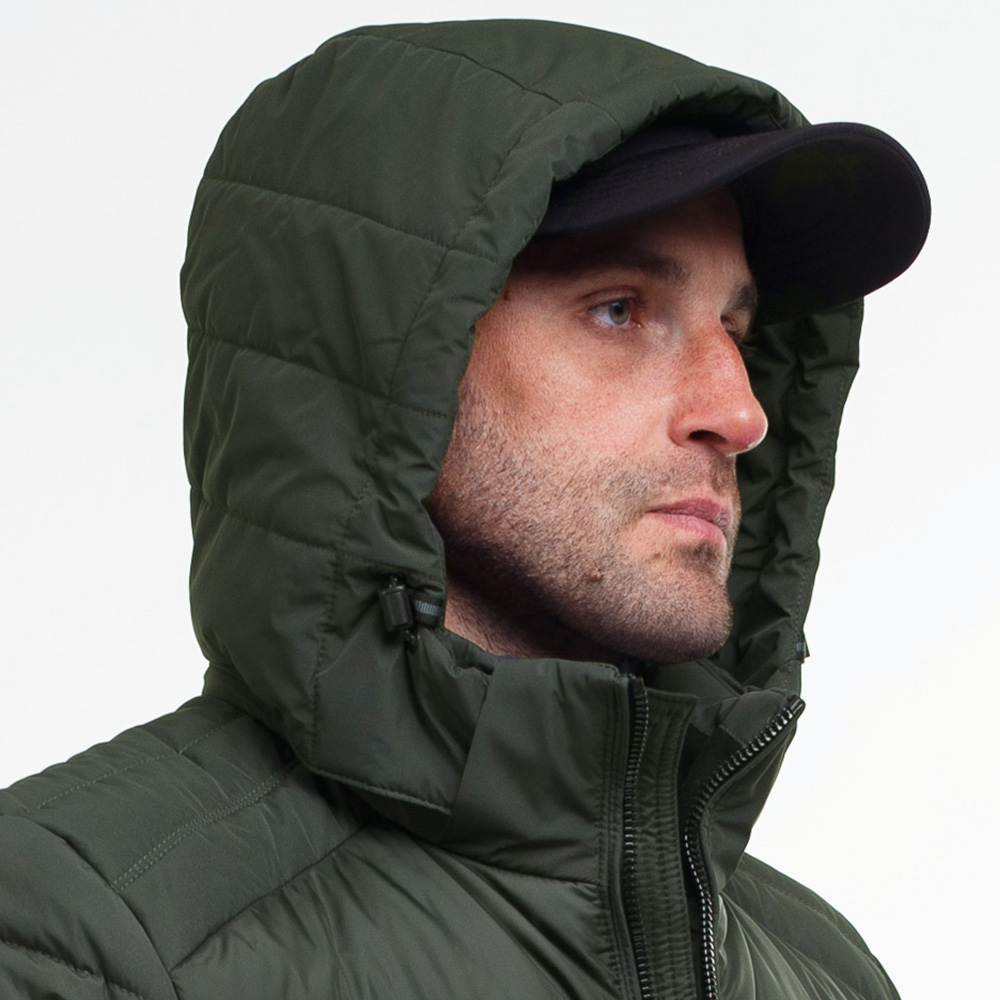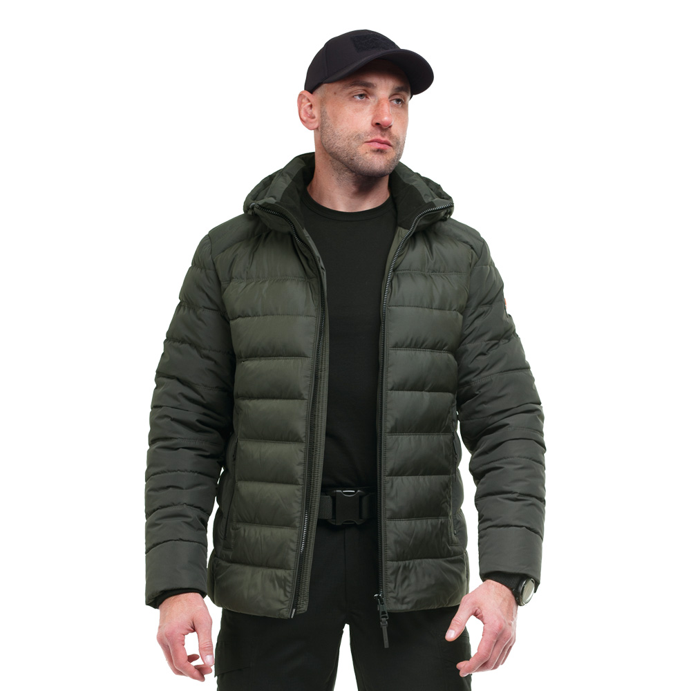 Стьобана чоловіча куртка з капюшоном Cyclon Olive з центральною застібкою на блискавці, знімним капюшоном і утеплювачем з біопуху. Виріб призначений для зимового та демісезонного періоду. Верх куртки виготовлений з міцного 100% дихаючого поліестеру, здатного витримати вітряну, дощову і снігову погоду. Підкладка виконана зі 100% поліестеру.