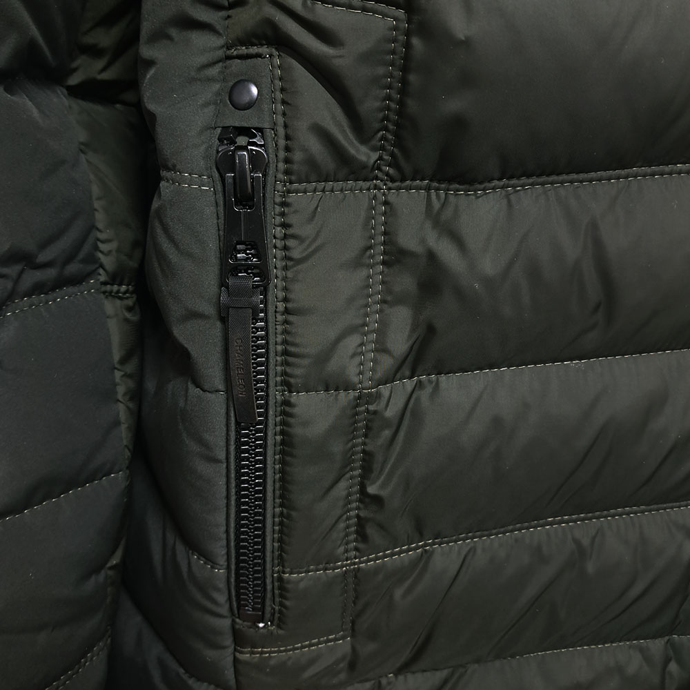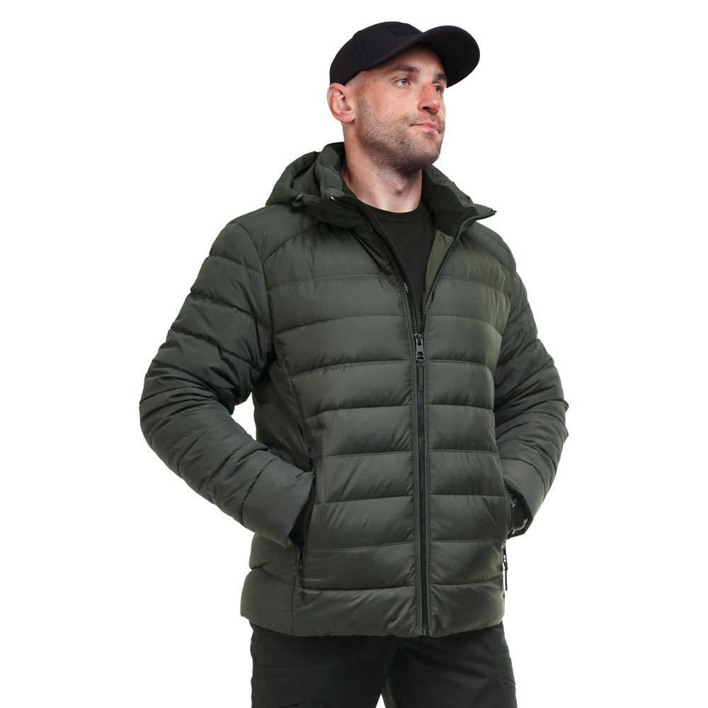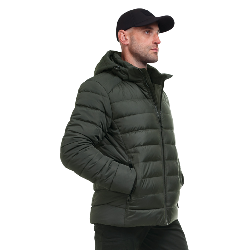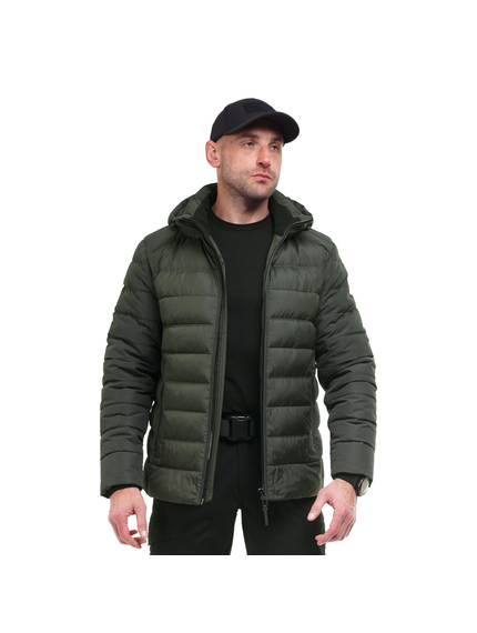 Стьобана чоловіча куртка з капюшоном Cyclon Olive з центральною застібкою на блискавці, знімним капюшоном і утеплювачем з біопуху. Виріб призначений для зимового та демісезонного періоду. Верх куртки виготовлений з міцного 100% дихаючого поліестеру, здатного витримати вітряну, дощову і снігову погоду. Підкладка виконана зі 100% поліестеру.