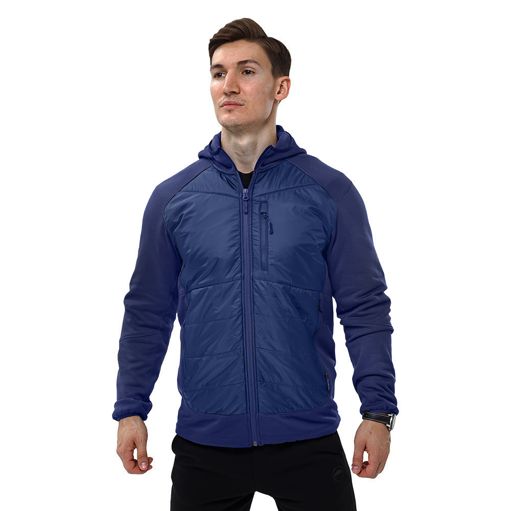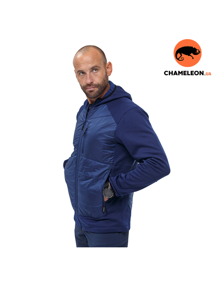 Чоловіча куртка Legioner Blue/Blue з утеплювачем Primaloft пошита з приємного на дотик комбінованого матеріалу. Верх виготовлений з еластичного трикотажу з подвійною поверхнею Polartec® Power Stretch® з поліестеру з густим ворсом з додаванням волокон лайкри (88% поліестеру, 12% лайкра), щільністю 224 г/м2. Кожна ворсинка всередині порожниста має складну трубчасту структуру. Принцип дії – це ефект сухого тепла, що забезпечується за рахунок високого рівня вентиляції та малого коефіцієнта поглинання вологи. М'яка еластична тканина Power Stretch® має міцні еластичні волокна, що забезпечують розтяг у чотирьох напрямках. Дихаюча тканина забезпечує вам легкість і свободу в русі, є легкою і добре відводить від тіла вологу. Тканина має особливу конструкцію, що складається з двох унікальних поверхонь: міцний, гладкий вітро та зносостійкий зовнішній шар та м'який приємний для тіла внутрішній шар мікрофлісу, який поглинає вологу зі шкіри на 25% більше ніж інші матеріали, що застосовуються для нижнього шару одягу. Зовнішня поверхня Power Stretch має покриття з низьким коефіцієнтом тертя, тому ця універсальна тканина чудово поєднується з іншими матеріалами і сама по собі стійка до стирання.