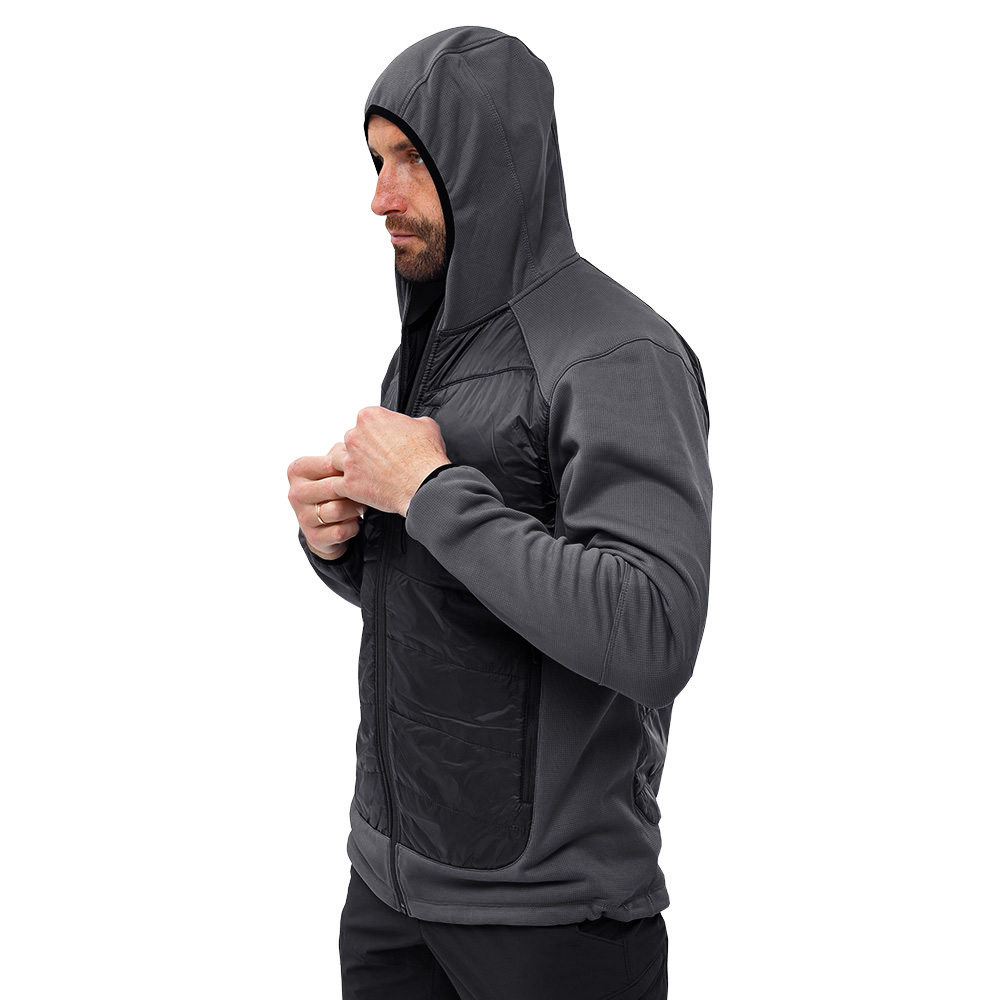 Куртка Legioner Grey/Black призначена для прохолодної погоди як додатковий утеплюючий шар, або в теплу пору року як верхній шар одягу. Еластичний кант на манжетах, а також низ виробу регулюється на гумці з обох боків маленькими фіксаторами, що запобігає потраплянню холодного повітря всередину.
