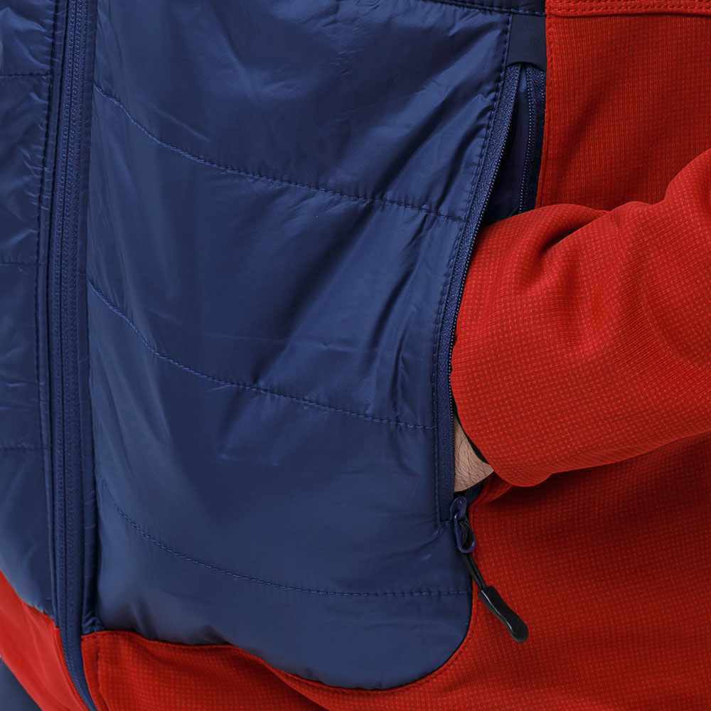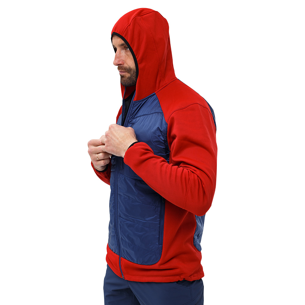 Чоловіча куртка Legioner Red/Blue з утеплювачем Primaloft пошита з приємного на дотик комбінованого матеріалу. Верх виготовлений з еластичного трикотажу з подвійною поверхнею Polartec® Power Stretch® з поліестеру з густим ворсом з додаванням волокон лайкри (88% поліестеру, 12% лайкра), щільністю 224 г/м2. Кожна ворсинка всередині порожниста має складну трубчасту структуру. Принцип дії – це ефект сухого тепла, що забезпечується за рахунок високого рівня вентиляції та малого коефіцієнта поглинання вологи. М'яка еластична тканина Power Stretch® має міцні еластичні волокна, що забезпечують розтяг у чотирьох напрямках. Дихаюча тканина забезпечує вам легкість і свободу в русі, є легкою і добре відводить від тіла вологу. Тканина має особливу конструкцію, що складається з двох унікальних поверхонь: міцний, гладкий вітро та зносостійкий зовнішній шар та м'який приємний для тіла внутрішній шар мікрофлісу, який поглинає вологу зі шкіри на 25% більше ніж інші матеріали, що застосовуються для нижнього шару одягу. Зовнішня поверхня Power Stretch має покриття з низьким коефіцієнтом тертя, тому ця універсальна тканина чудово поєднується з іншими матеріалами і сама по собі стійка до стирання.