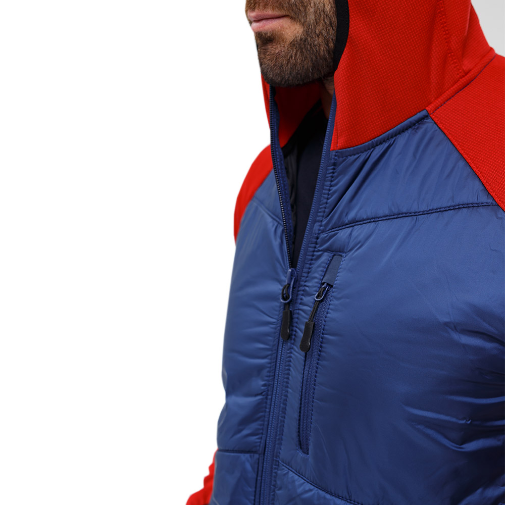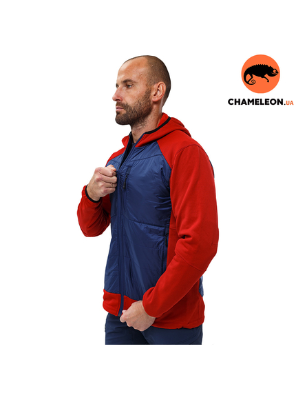 Чоловіча куртка Legioner Red/Blue з утеплювачем Primaloft пошита з приємного на дотик комбінованого матеріалу. Верх виготовлений з еластичного трикотажу з подвійною поверхнею Polartec® Power Stretch® з поліестеру з густим ворсом з додаванням волокон лайкри (88% поліестеру, 12% лайкра), щільністю 224 г/м2. Кожна ворсинка всередині порожниста має складну трубчасту структуру. Принцип дії – це ефект сухого тепла, що забезпечується за рахунок високого рівня вентиляції та малого коефіцієнта поглинання вологи. М'яка еластична тканина Power Stretch® має міцні еластичні волокна, що забезпечують розтяг у чотирьох напрямках. Дихаюча тканина забезпечує вам легкість і свободу в русі, є легкою і добре відводить від тіла вологу. Тканина має особливу конструкцію, що складається з двох унікальних поверхонь: міцний, гладкий вітро та зносостійкий зовнішній шар та м'який приємний для тіла внутрішній шар мікрофлісу, який поглинає вологу зі шкіри на 25% більше ніж інші матеріали, що застосовуються для нижнього шару одягу. Зовнішня поверхня Power Stretch має покриття з низьким коефіцієнтом тертя, тому ця універсальна тканина чудово поєднується з іншими матеріалами і сама по собі стійка до стирання.