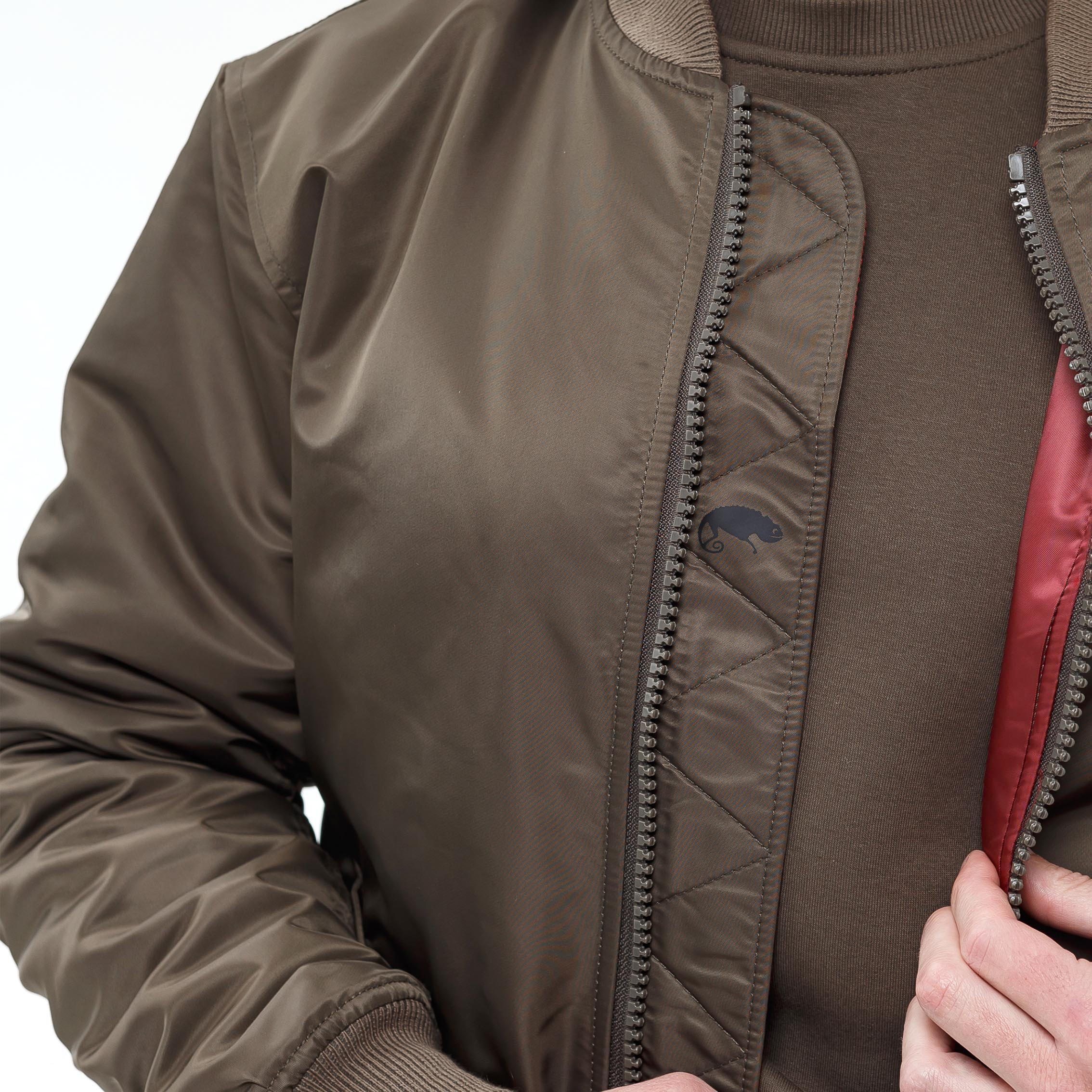 Всередині куртки MA-1 яскрава підкладка з 100 % бордового поліестеру, щільність 70 г/м2. Така підкладка була не тільки елементом дизайну, а й функціональною частиною куртки та була створена для підвищення видимості і швидкого знаходження пілотів у надзвичайних ситуаціях.