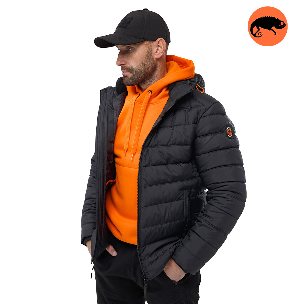 Виріб виконаний у спортивному стилі, відмінно підійде для повсякденного використання. Куртка застібається на центральну блискавку з одним бігунком. Комір стійка надійно захищає від холоду. На лівому рукаві флекстран із фірмовим лого Chameleon / Standart Series. Капюшон пристібається на блискавці, об'єм регулюється на шнурівці. Куртка доповнена двома бічними кишенями із застібками на блискавці, а також є 2 внутрішні кишені із застібкою кнопкою. На рукавах для додаткового захисту від проникнення холоду передбачені манжети із м'якого щільного трикотажу. Низ куртки можна регулювати за об'ємом за допомогою шнурків.