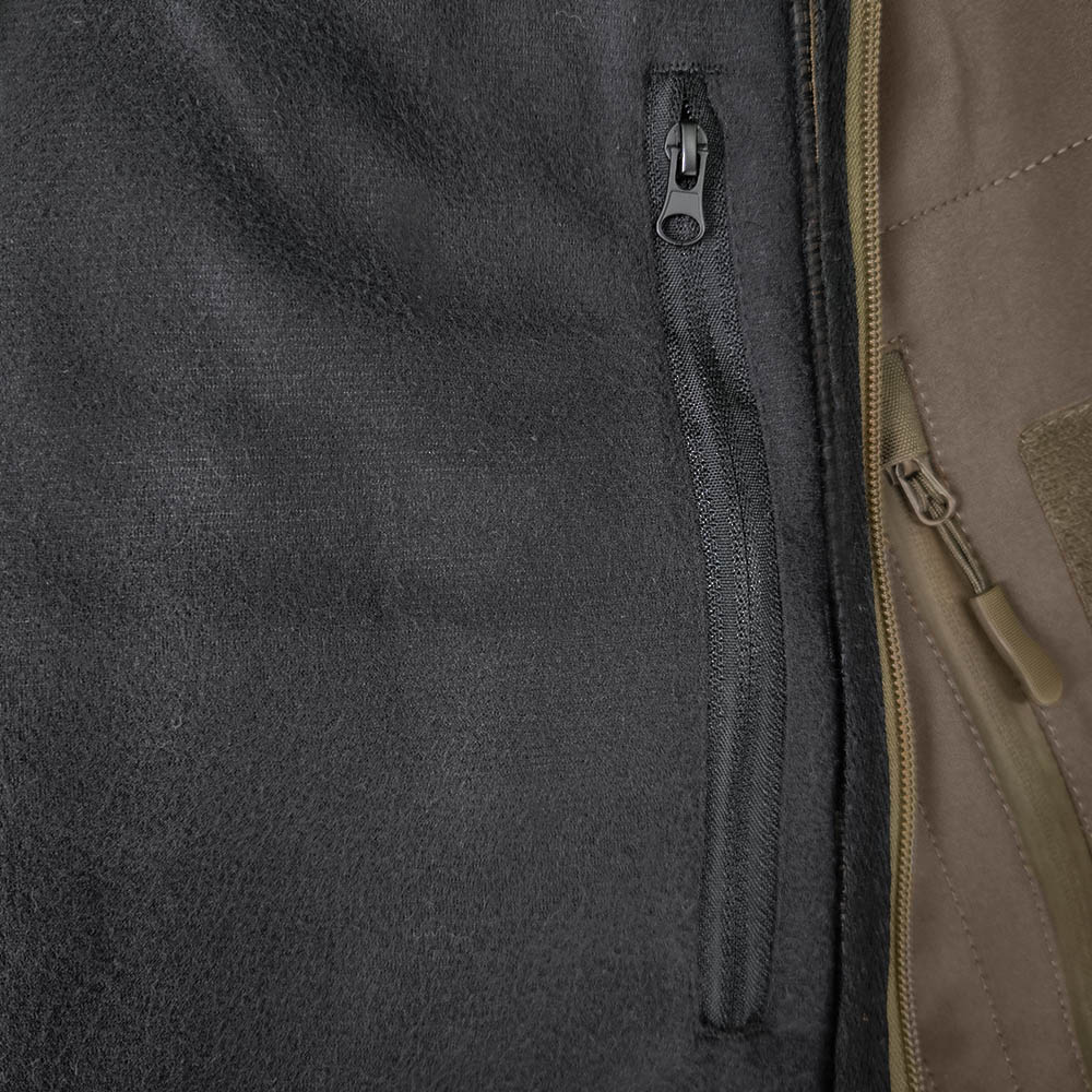 - Матеріал: Soft Shell Мембранна тканина 100%, поліестер 100%, мікрофліс 100%; 100% NYLON 6.6 Cordura (100% нейлон) щільністю 65 г/м2; підкладкова тканина 100% поліестер антипух.
