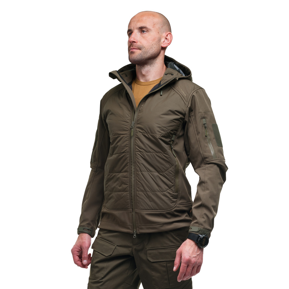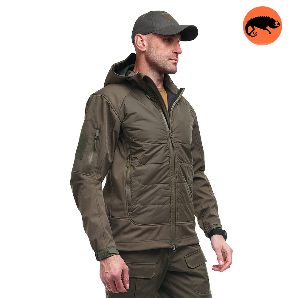 Чоловіча демісезонна куртка Soft Shell Gladiator Gen 2 Tundra зшита з тришарового матеріалу Softshell з утепленими вставками з нейлону на торсі та спині.