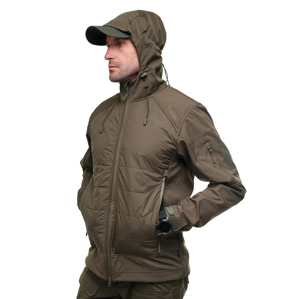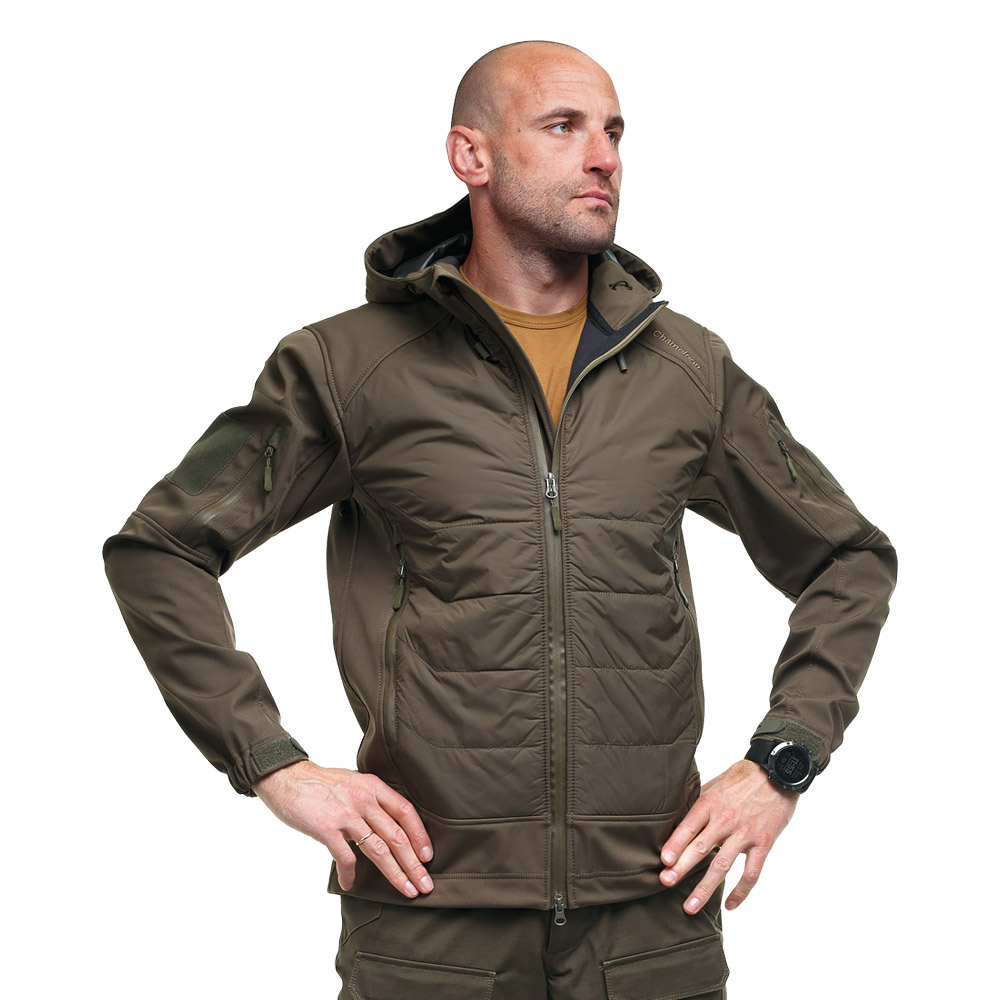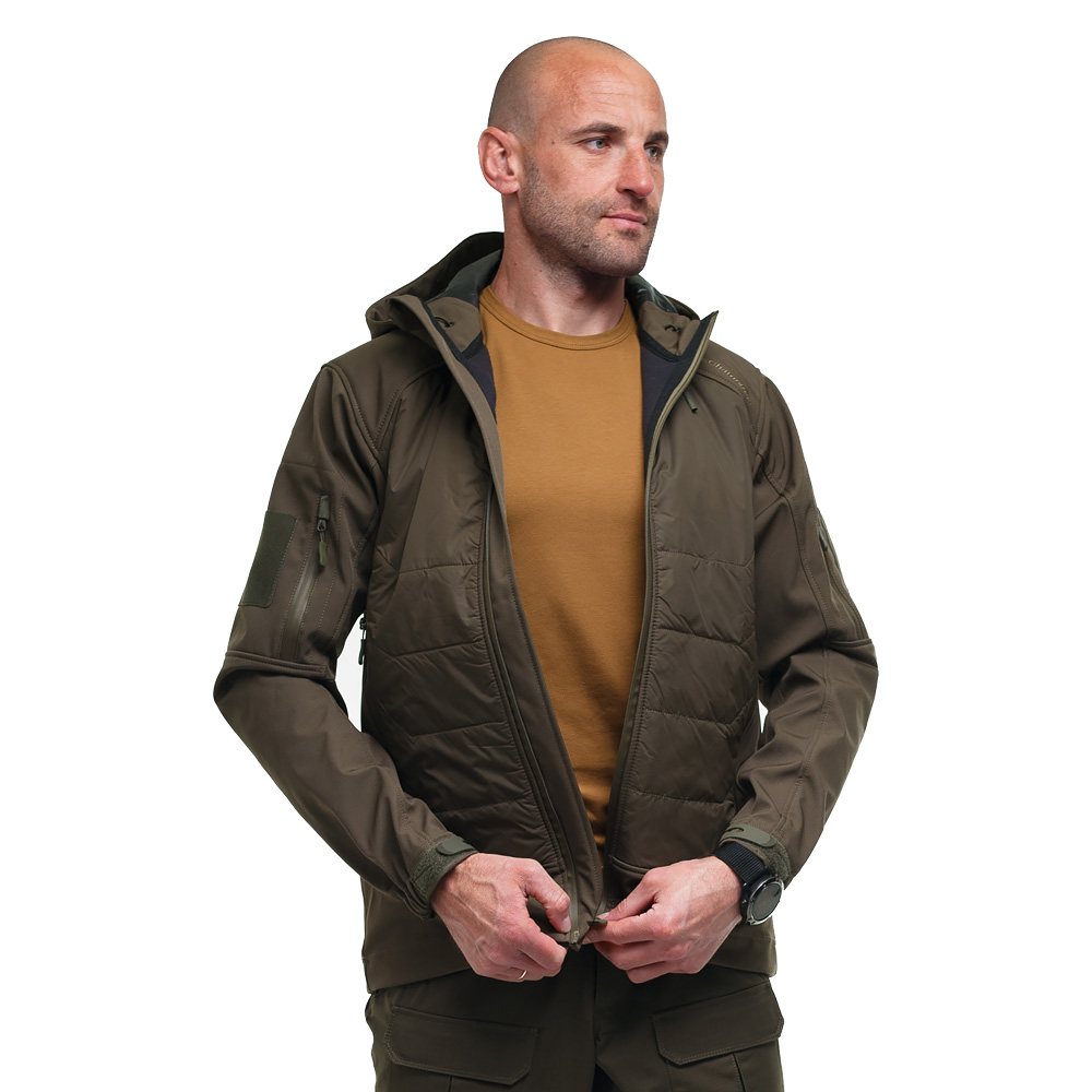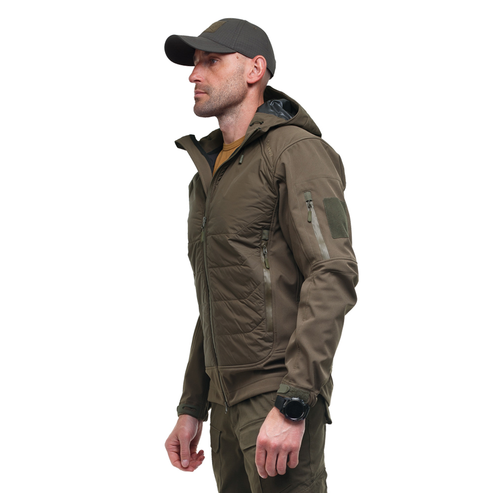 Чоловіча демісезонна куртка Soft Shell Gladiator Gen 2 Tundra зшита з тришарового матеріалу Softshell з утепленими вставками з нейлону на торсі та спині.