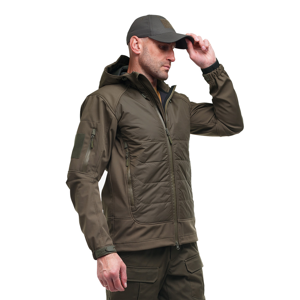 Чоловіча демісезонна куртка Soft Shell Gladiator Gen 2 Tundra зшита з тришарового матеріалу Softshell з утепленими вставками з нейлону на торсі та спині.