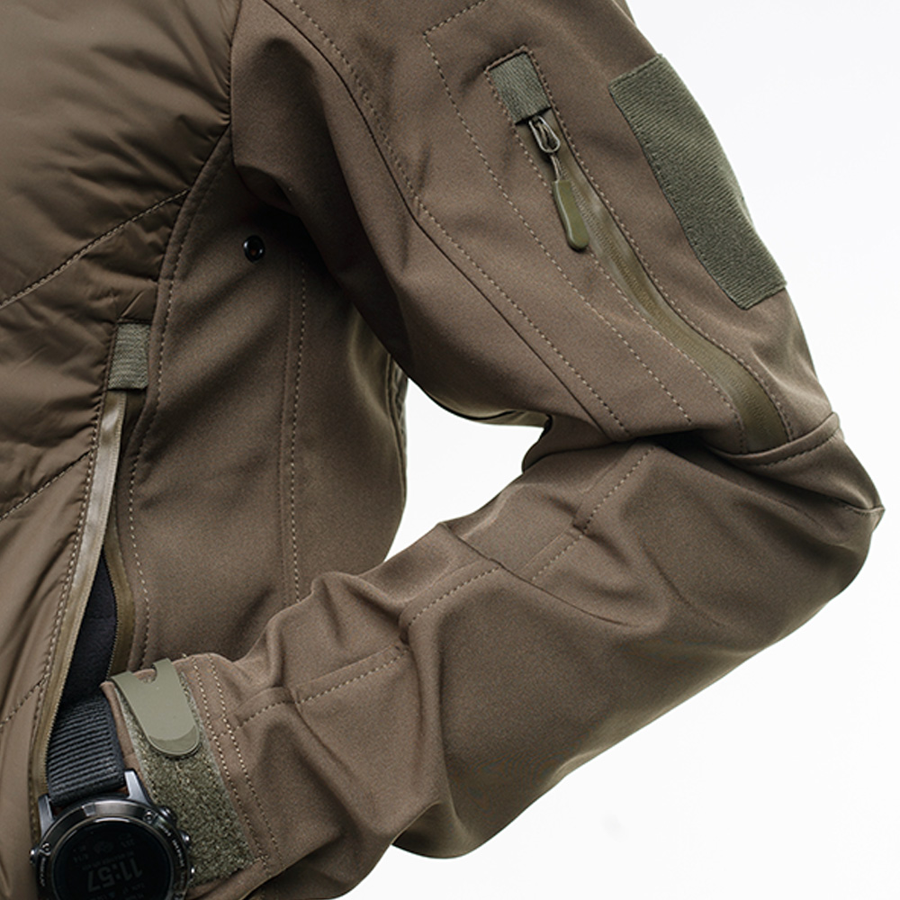 Чоловіча демісезонна куртка Soft Shell Gladiator Gen 2 Tundra зшита з тришарового матеріалу Softshell з утепленими вставками з нейлону на торсі та спині.