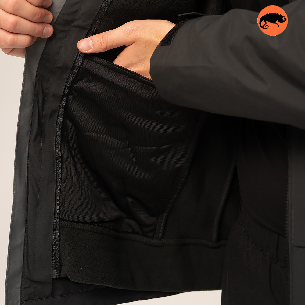 Куртка зберігає сухість усередині, ефективно відводячи зайву вологу та захищаючи від дощу й снігу.