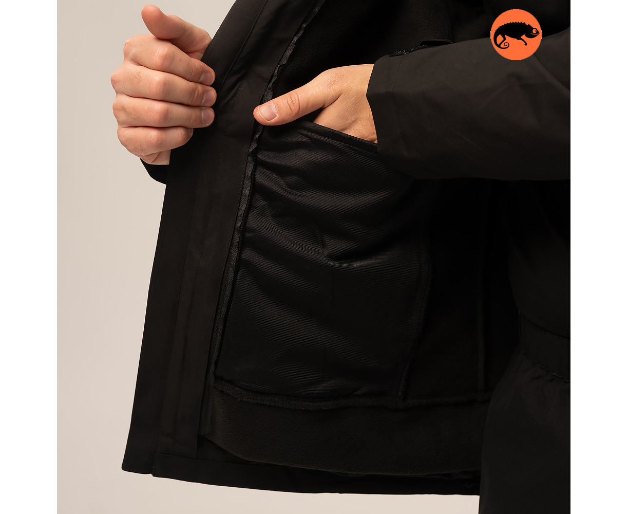 Куртка зберігає сухість усередині, ефективно відводячи зайву вологу та захищаючи від дощу й снігу.