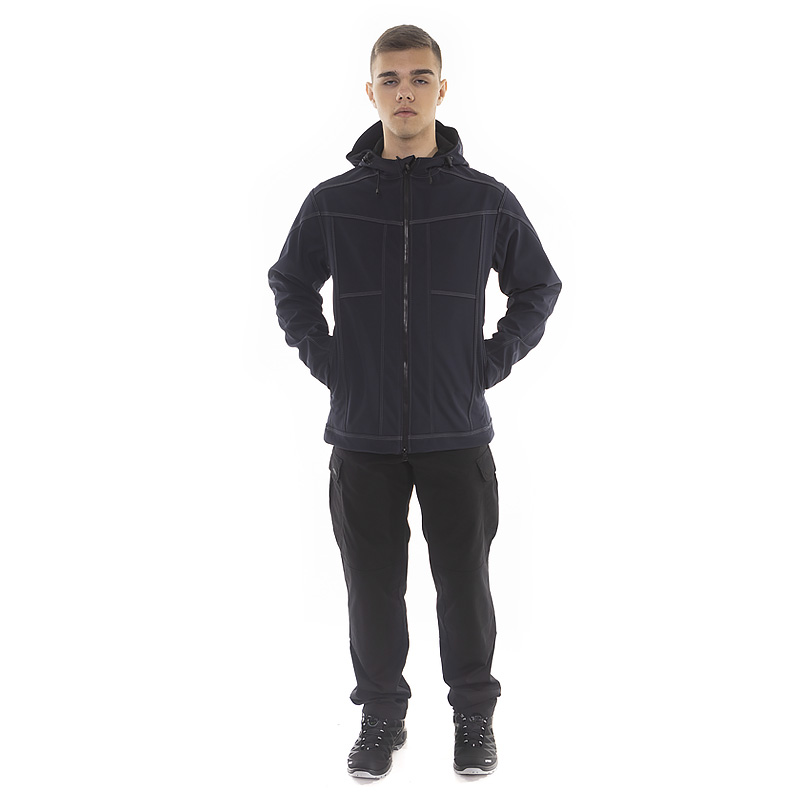 Демісезонна чоловіча куртка Wolf Navy виготовлена з матеріалу Softshell, який складається з 3 шарів: