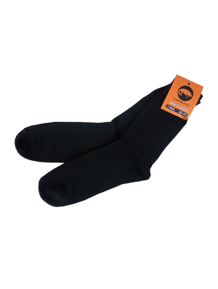 Чоловічі шкарпетки Chameleon long (чорні) міцні та зносостійкі, виготовлені з 90% бавовни, 10% лайкри. Шкарпетки м'які, легкі у догляді, зручні у носінні. Шкарпетки добре пропускають повітря, даючи шкірі дихати. Влітку в спеку бавовняні шкарпетки захистять від натирання взуття та перегріву, а демісезонний період створюють відчуття тепла.
