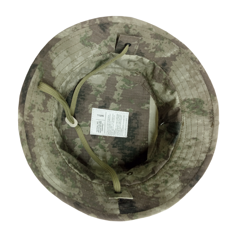Панама Тактична A-TACS AU невеликих габаритів, її зручно носити і при цьому вона захищає обличчя, голову та шию від сонця. Панама пошита з міцного зносостійкого матеріалу ріп-стоп (65% поліестер, 35% бавовни), який має вологовідштовхуючий ефект, що робить головний убір комфортним у будь-яку літню погоду. Матеріал зносостійкий: панама не смінається, не розтягується, не утворює катишків. Матеріал водостійкий, не пропускає вологу, швидко висихає після прання. Матеріал не сприйнятливий до ультрафіолету, не вигорає на сонці, але водночас легкий, м'який та повітропроникний.