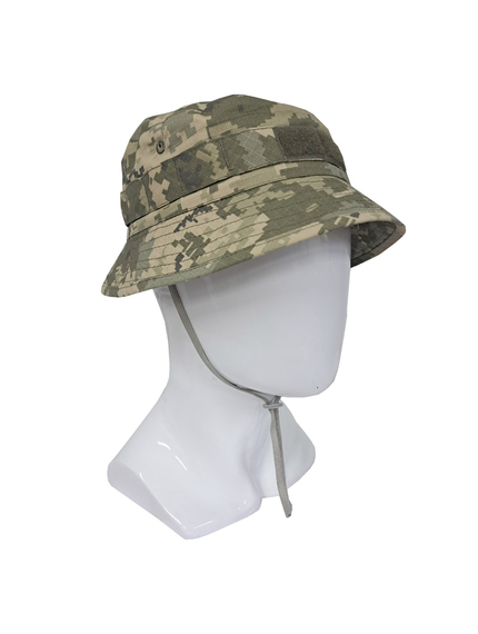 Панама тактична Ukraine Digital Pixel невеликого габариту, її зручно носити і водночас вона захищає обличчя, голову та шию від сонця. Панама зшита з міцного зносостійкого матеріалу рип-стоп (60% бавовна, 40% поліестер щільністю 230 г/м2), який має вологовідштовхувальний ефект, що робить головний убір комфортним у будь-яку літню погоду. Матеріал зносостійкий: не смінається, не розтягується, не утворює катишків. Матеріал водостійкий, не пропускає вологу, швидко висихає після прання. Матеріал не сприйнятливий до ультрафіолету, не вигорає на сонці, але водночас легкий, м'який та повітропроникний.