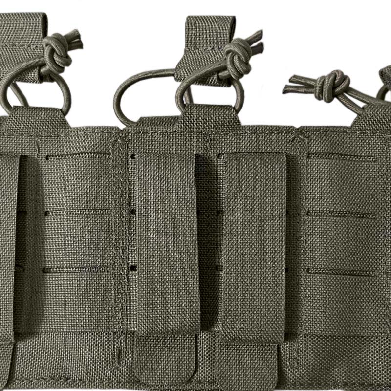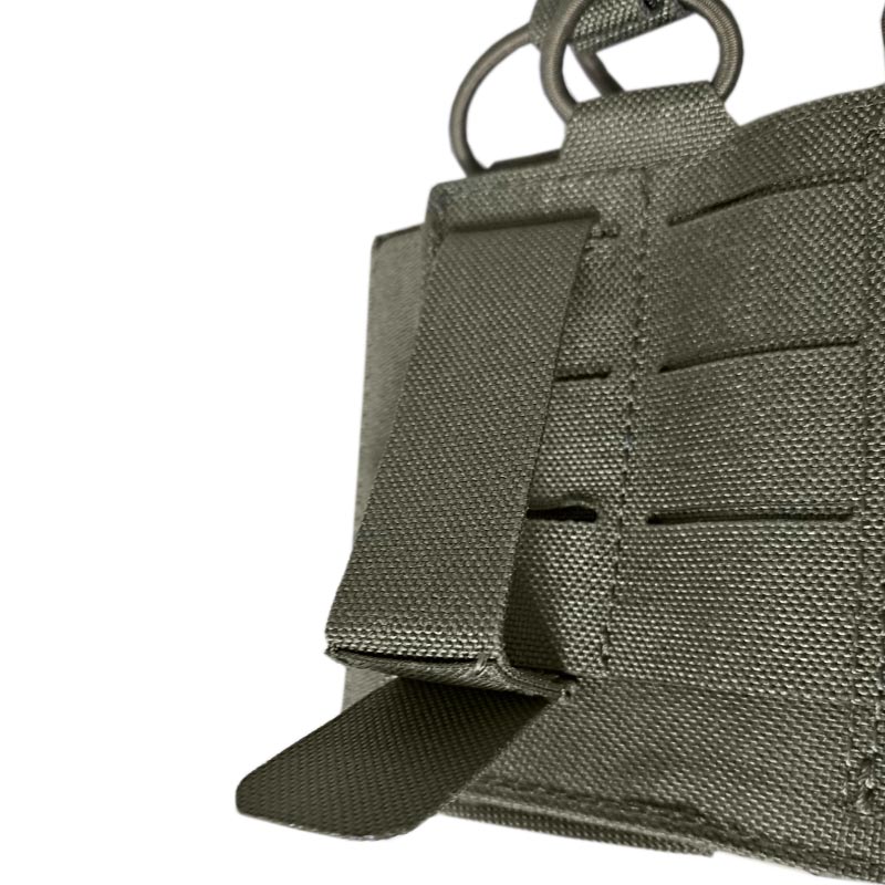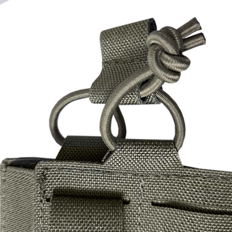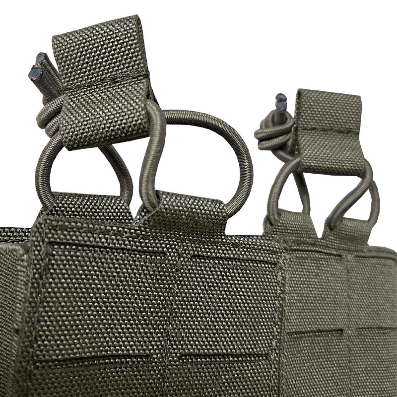Розмір підсумка 25*12 см. Підсумок має відкриту конструкцію. Надійна фіксація магазинів забезпечується за рахунок еластичної гумки, гарантуючи захист від випадання. За допомогою інтерфейсу Molle, зробленого за технологією Laser Cut, легко кріпиться до тактичного спорядження.