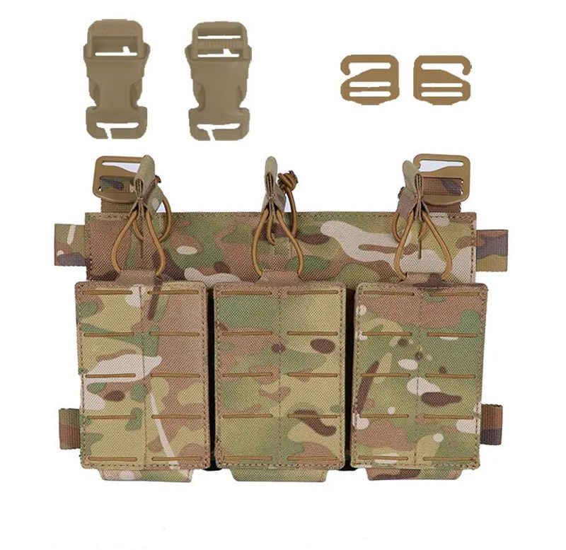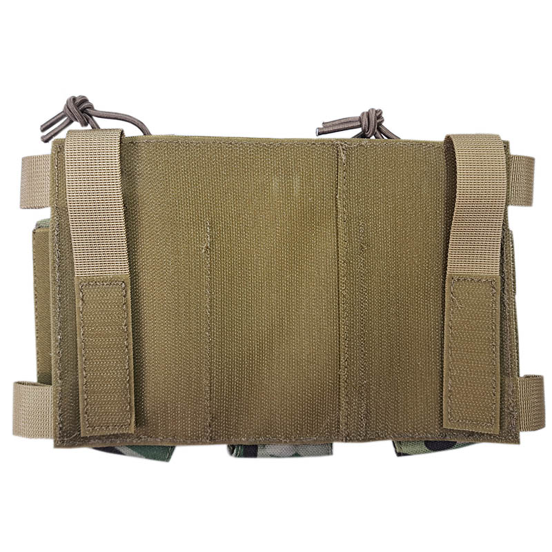 Розмір підсумку 15*25 см. У комплект входять обидва набори пряжок та гачки. Підсумок має відкриту конструкцію та призначений для розміщення 3 магазинів. Надійна фіксація магазинів забезпечується за рахунок строп та еластичної гумки, гарантуючи захист від випадання. За допомогою інтерфейсу Molle, зробленого за технологією Laser Cut, легко кріпиться до тактичного спорядження за допомогою велкро-липучок, пряжок, гачків.