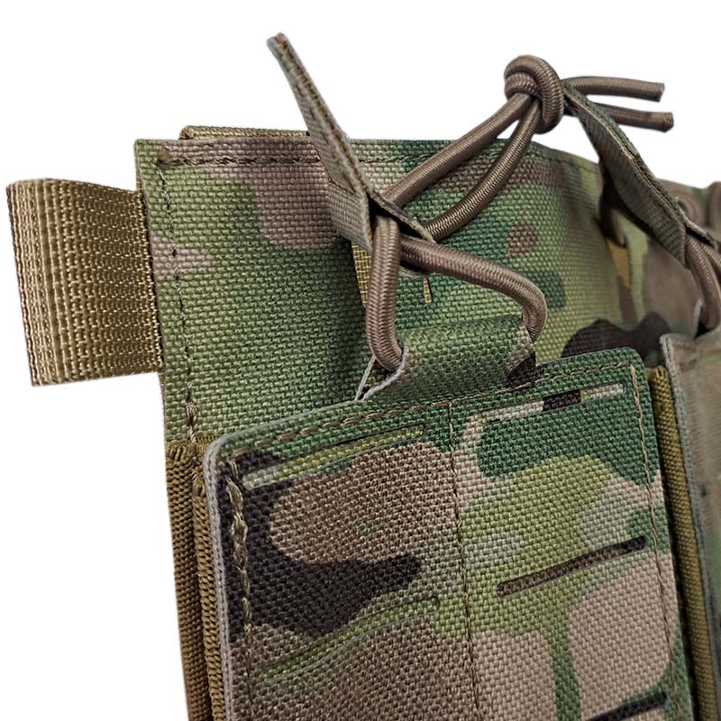 Підсумок потрійний еластичний відкритого типу для магазинів Multicam призначений для надійної фіксації та зберігання магазинів серії АК/AR. Підсумок створений для використання в комплекті бойового індивідуального екіпірування, обладнаного модульною системою кріплення знімних підсумків, сумісною із системою MOLLE.