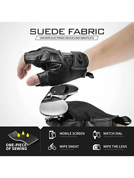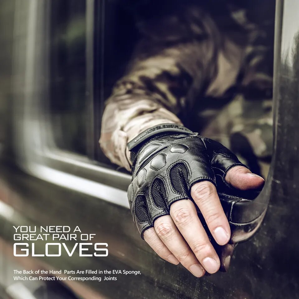 Спортивні рукавички тактичні з відкритими пальцями чорні виготовлені з натуральної м'якої дихаючої овечої шкіри, з TPR-гуми, зносостійкого матеріалу XPD з потовщеним наповнювачем (антивібраційної прокладки), мікрофібри, дихаючої сітчастої тканини. Виріб забезпечить вам міцне зчеплення, свободу та гнучкість рухів. Рукавички легкі, міцні, зносостійкі.